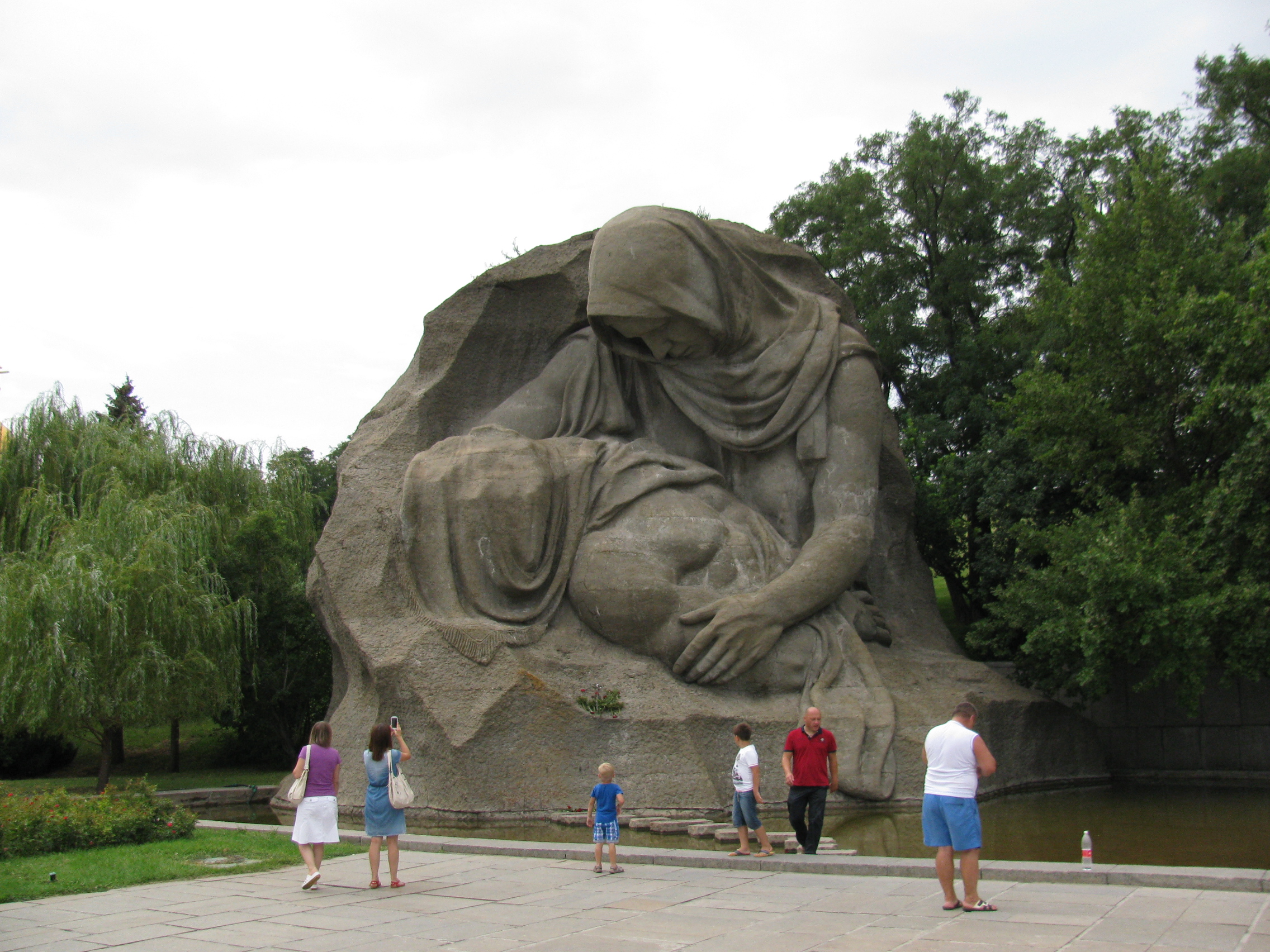 Turda gördüğüm The Motherland calls heykeline gitmeye karar verdim. Tabi ki yürüyerek. Uzun bir yürüyüş sonunda heykelin olduğu parka ulaştım. The Motherlands calls heykeli Mamayev Kurgan anıt müze parkının en tepesinde bulunuyor. Oldukça büyük bir yer. Heykele ulaşmak için tırmanmamız gereken toplam basamak sayısı 405. Basamaklarla ek olarak heykel ulaşmak için bir kilometrelik Kahramanlık Allesini de yürümek gerekiyor. Bu heykel bu güne kadar gördüğüm en büyük heykel. Ayrıca burada şehitlik, kilise, savaş zamanını yansıtan rölyef çalışması olan büyük bir bölüm de var.