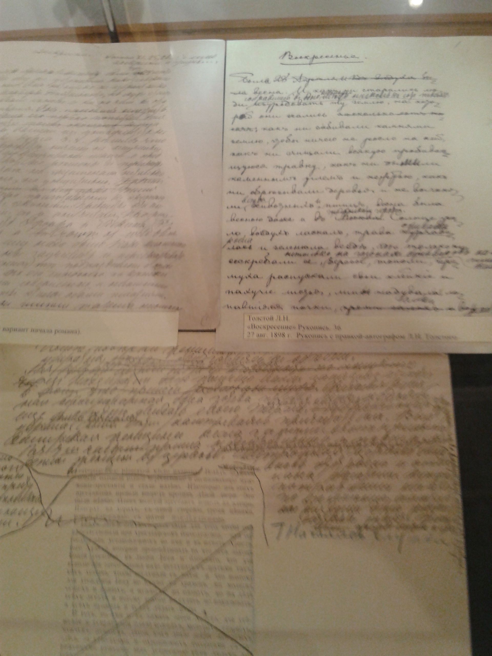 Müzedeki bölümleri Tolstoy’un yazdığı romanlara göre ayarlamışlar. El yazmaları, kullandığı kalem, ufak tefek eşyaları ona göre bölümlere konulmuş. Benim fotoğrafını çektiğim el yazısı Anna Karenina romanını yazarken ki karalamaları.
