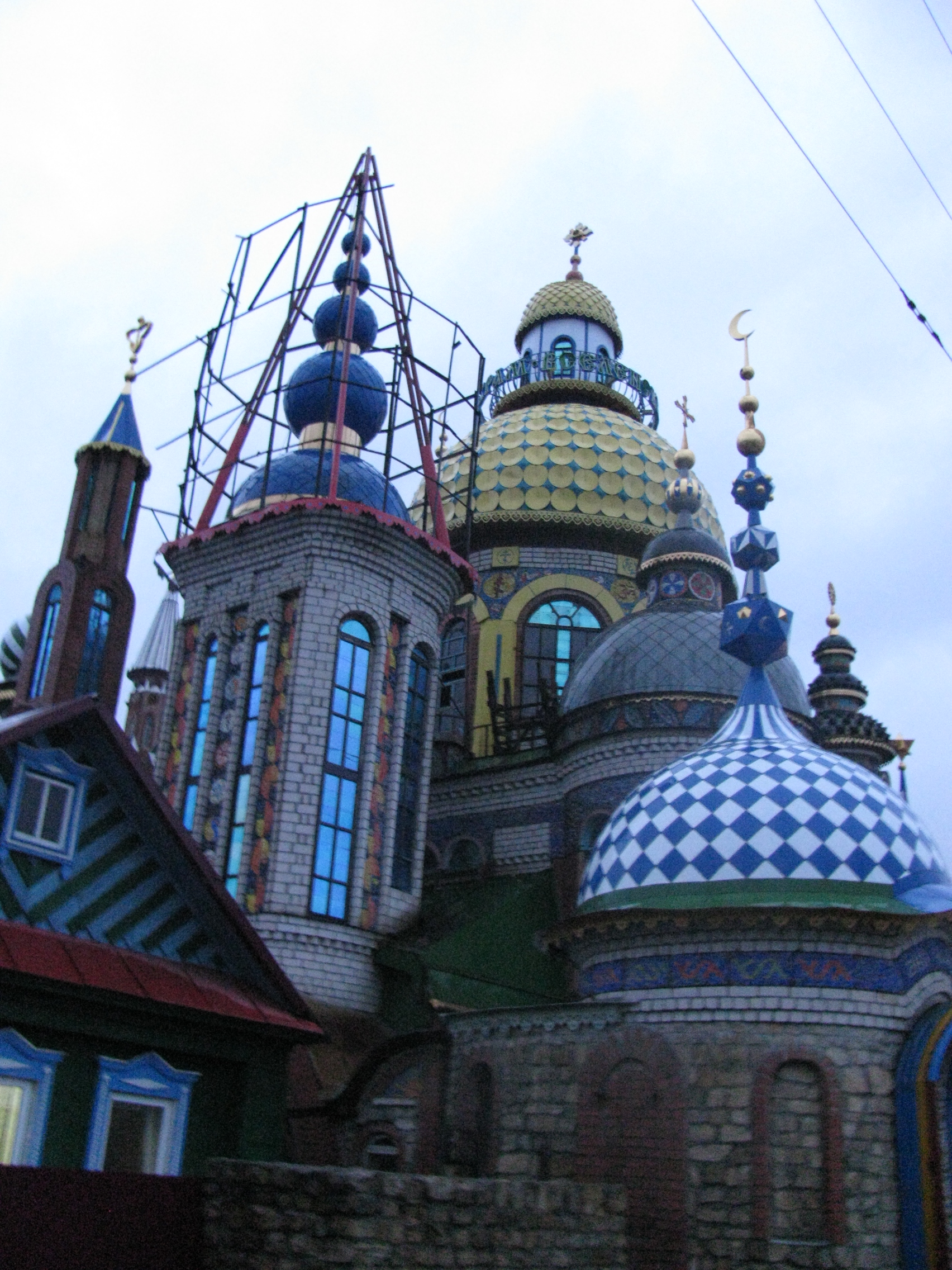 Akşamüstü gün batarken, bir iş adamın özel olarak yaptırdığı 4 inancın ibadethanesinin yan yana bulunduğu bir mabede gittik. Dünyada başka bir örneği olmayan bu mabedin içinde sinagog, cami, kilise ve Budist tapınağı bulunuyor. Ayrıca kilise de Ortodokslar, Katolikler, Evangelistler ve Protestanlar için ayrı bölümler var. Doğal olarak Kazanlılar, din adına birbirini kesenlerin olduğu bir dünyada böyle bir hoşgörü Mabetlerinin olmasından dolayı gurur duyuyor.