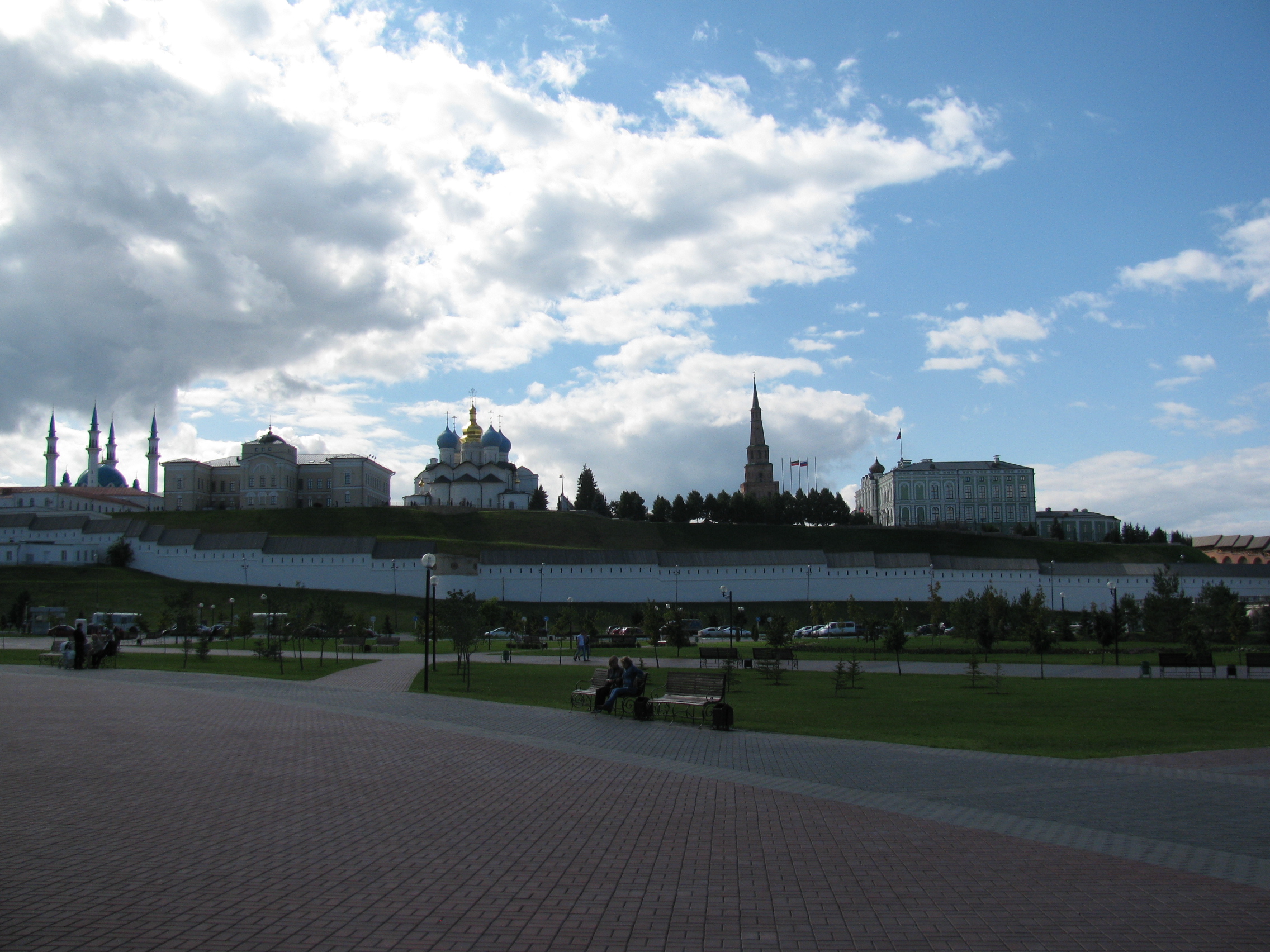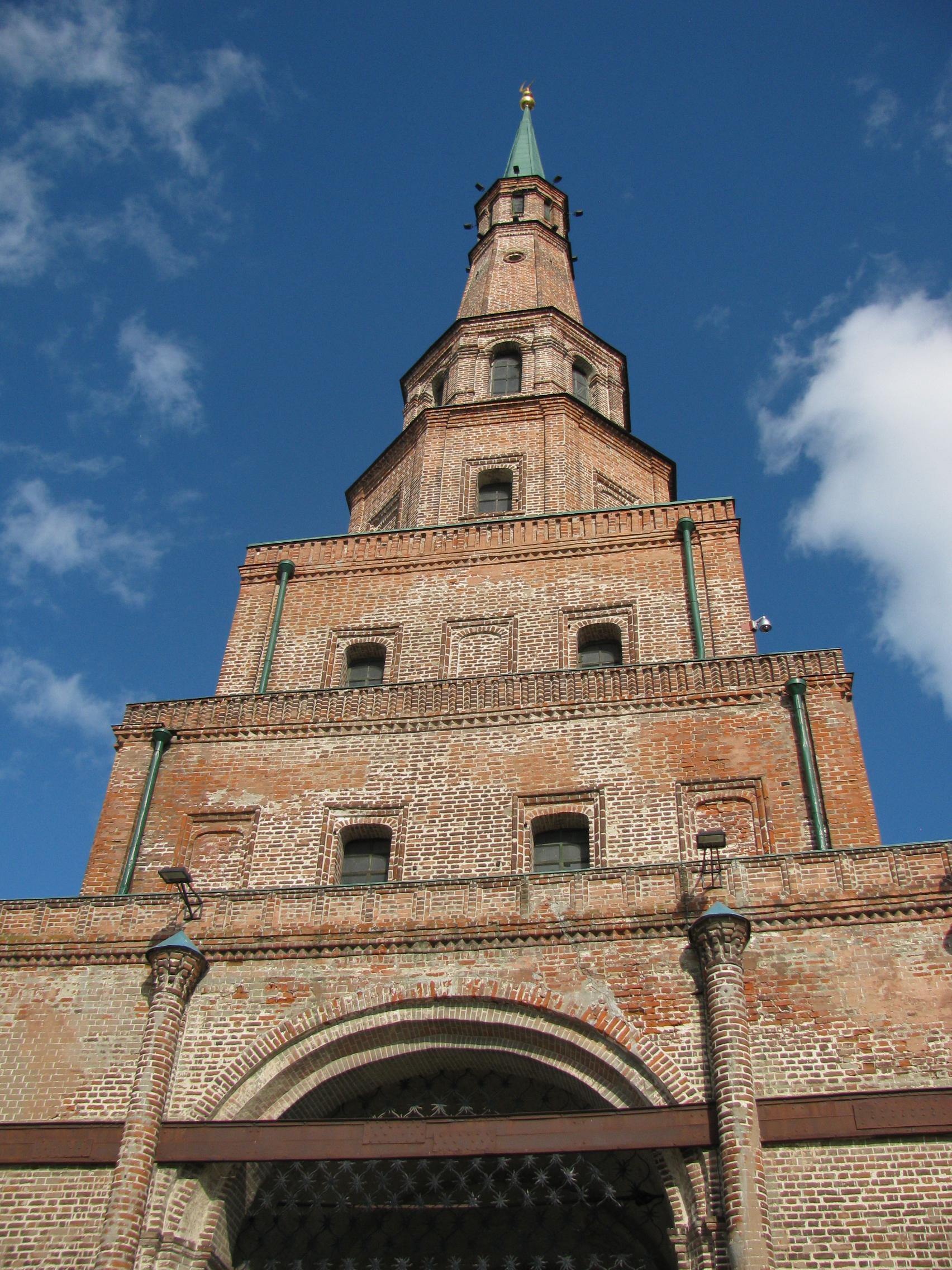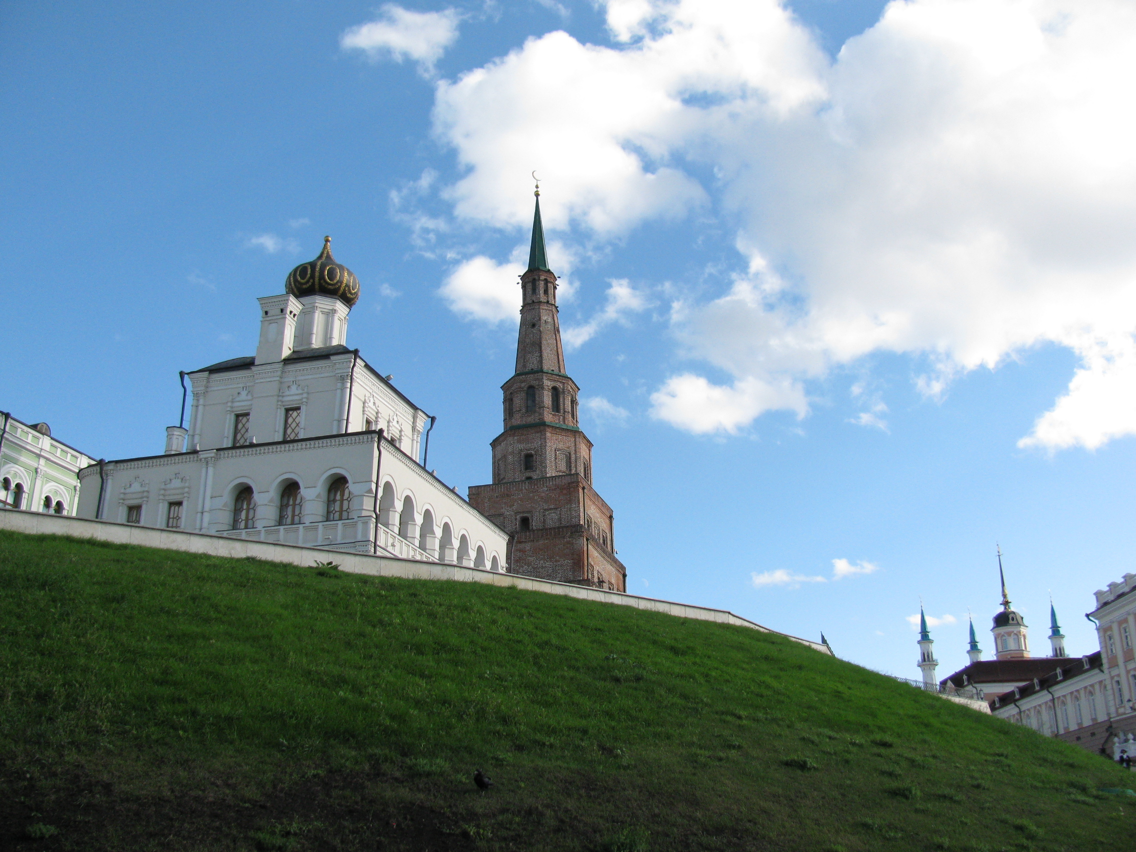 Kazan’ın en ünlü yeri olan Kazan Kremlin’e geze geze geldik. Kazan Kremlin, aynı Moskova’da ki Kremlin mantığında yapılmış. Moskova’daki kremlinden bir değişik özelliği var. Kazan’daki Kremlin Müslüman Tatar ve Ortodoks Rusların, günümüzde eşi zor rastlanan bir birlikteliğini ve hoşgörüsünü simgeliyor. Etrafında kuleler ve yüksek duvarları ile zamanında Kazan’ın kalesi durumundaymış. 11. Yüzyılda yapımına başlanan Kremlin’e zamanla içinde daha başka binalarda eklenmiş. En eski yapılardan biri idari bina, her dönemin başında bulunduğu kişinin çalışma ofisi olmuş. Günümde ise Tataristan Cumhurbaşkanı bu binayı kullanıyor. Hemen yanında 1000 yıllık tarihi olan Süyümbike kulesi Kazan’ın simgelerinden. Hakkında çok fazla efsanesi olan bu kule de İtalya’daki Pisa kulesi gibi eğik. İki metreye yakın bir eğiklik var. Kremlin’in içinde 16 yyda Korkunç İvan tarafından yapılan Blagoveşcenki Kilisesi de bulunuyor.