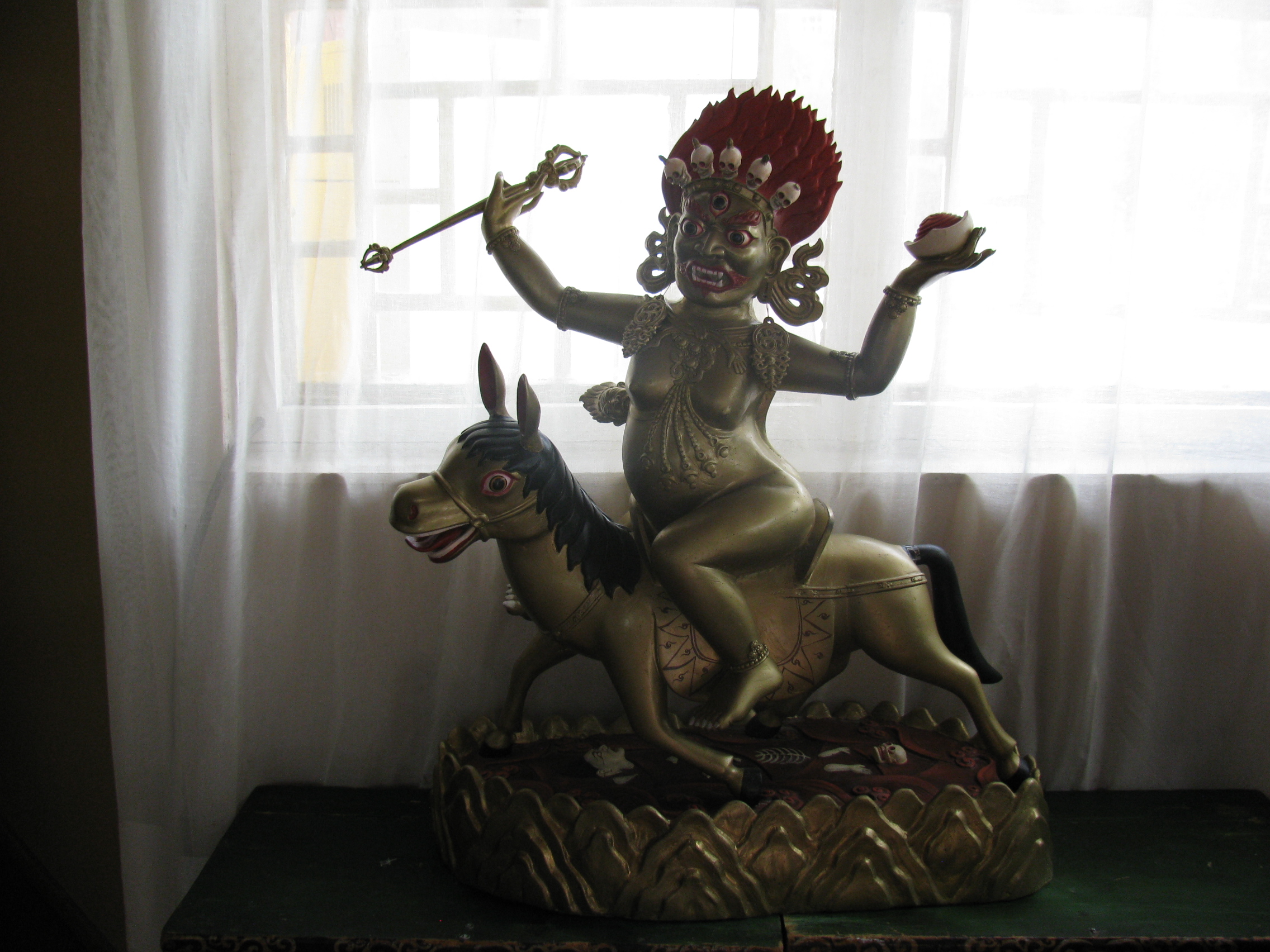 Gelelim tapınak müzenin içine, hayatımda ilk defa bir tapınağı gördüğümden mi yoksa gerçekten öylemi hissettiriyor bilmiyorum ama çok etkilendim. İçi tahmin edilemeyecek derece ince işlemeli heykellerle dolu. Her noktası ayrı bir renk. Bir de çok korkutucu. Korkunç suratlı maskeler yanında bağırsaklarından tutup sallandırılmış karaciğer betimlemeleri. İşkence görmüş ters duran insan betimlemeleri var. Oldukça enteresan. ( merak eden varsa, hesabıma 30000 tögrög yatırırsa onun için özel fotoğraf çekerim 🙂