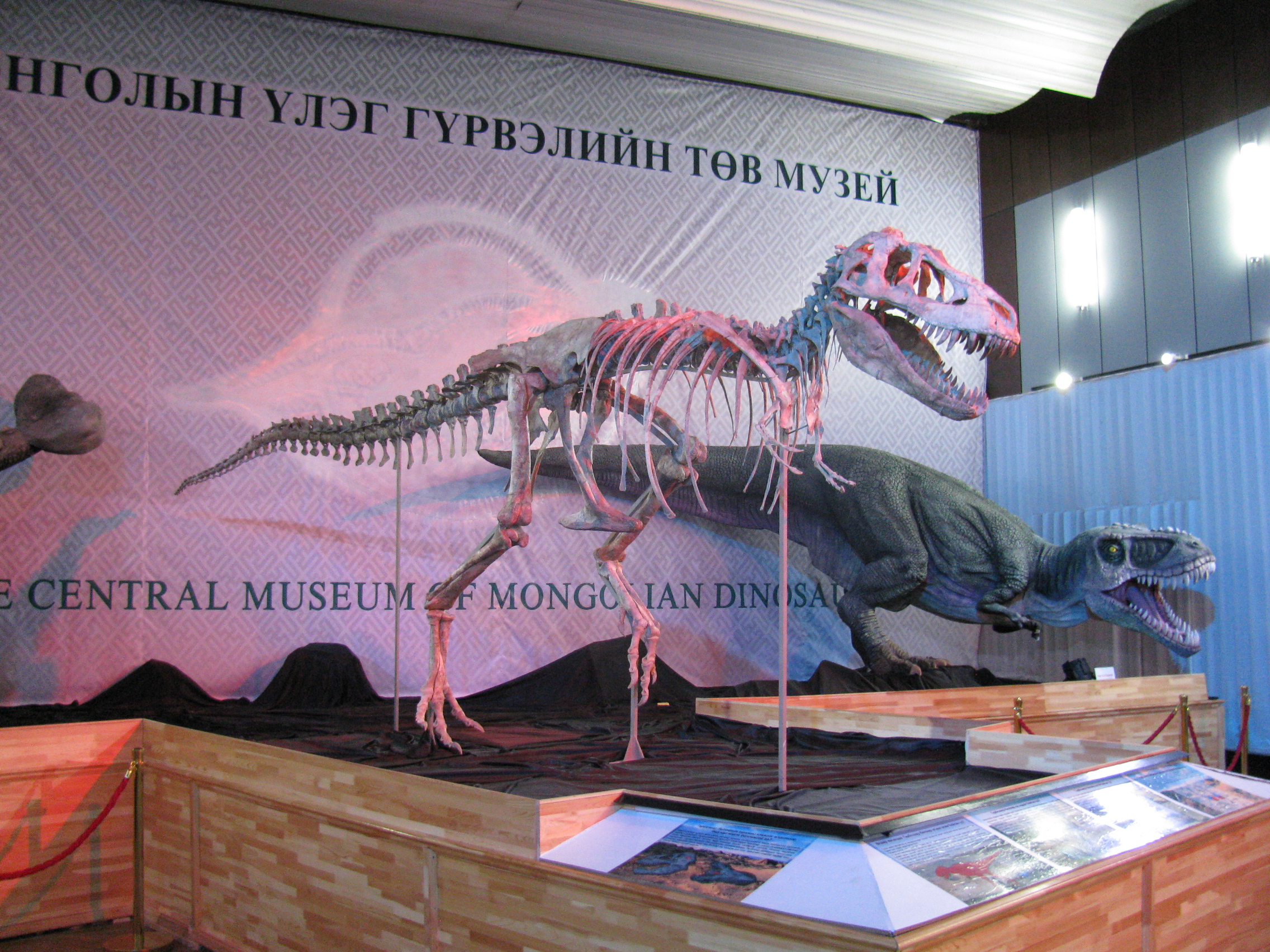 Bir de bu gün bir ilk daha oldu. Central Museum of Mongolian Dinosaurs’a gittim. Giriş 2000 tögrög, fotoğraf da bedava. Meğer Moğolistan dinozorlarıyla da ünlü bir yermiş. Adını buradan alan Tarbosaurus bataar diye bir dinozor varmış. Onun ve bir kaç tane dinozorun fosilini sergiliyorlar. İlk defa gerçek bir dinozor iskeleti gördüm. İlginçti.