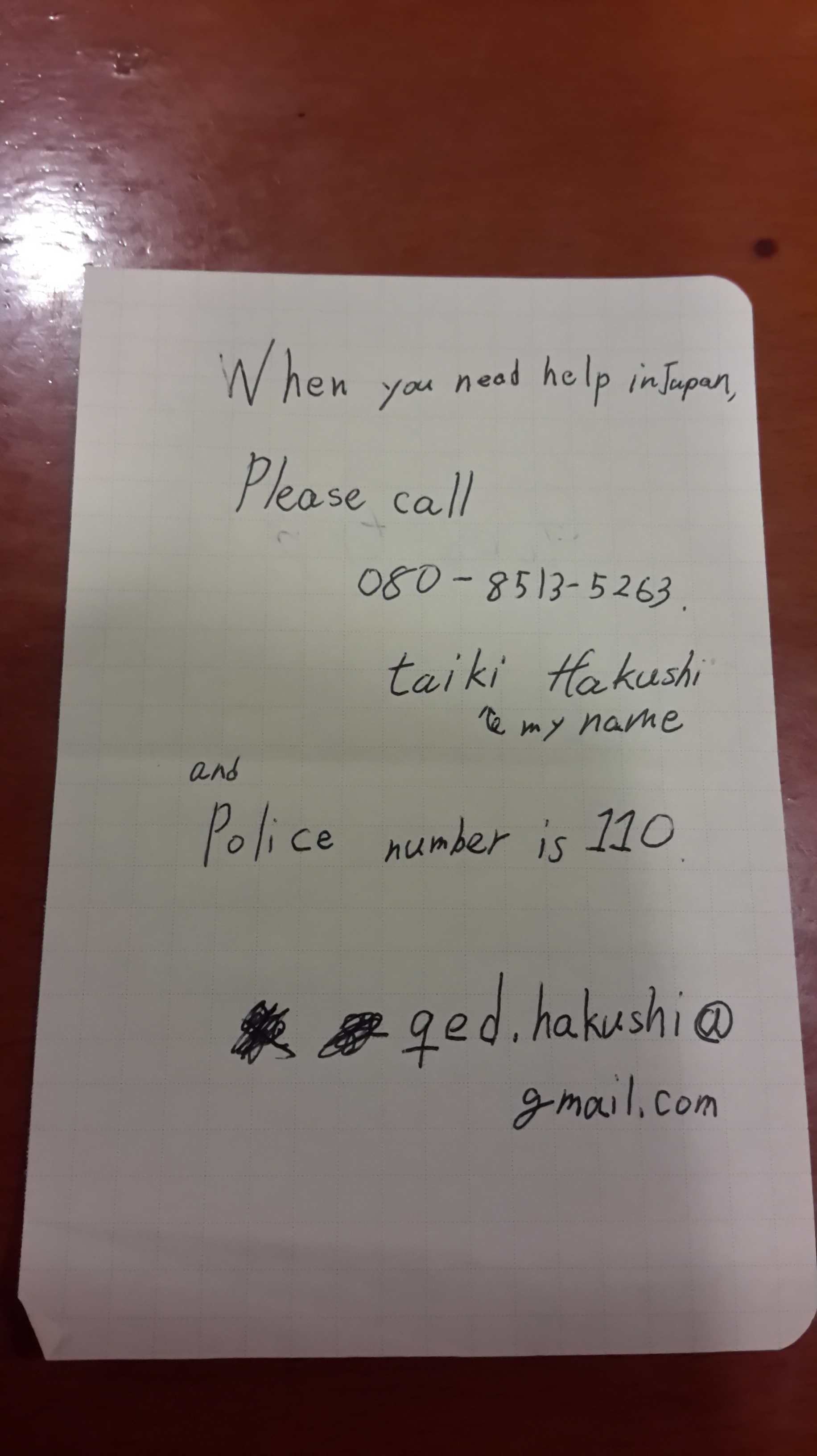 Sabah uyandığımda başucumda bir not buldum. Notu dün gece tanıştığım benim odada kalan bir Japon koymuş. Adı Taiki. Taiki ile ayaküstü 15 dakika sohbet etmişliğimiz var. Notun fotoğrafı aşağıda. Daha Japonya’ya varmadan Japonları sevmeye başladım. (Thank you Taiki 🙂 )