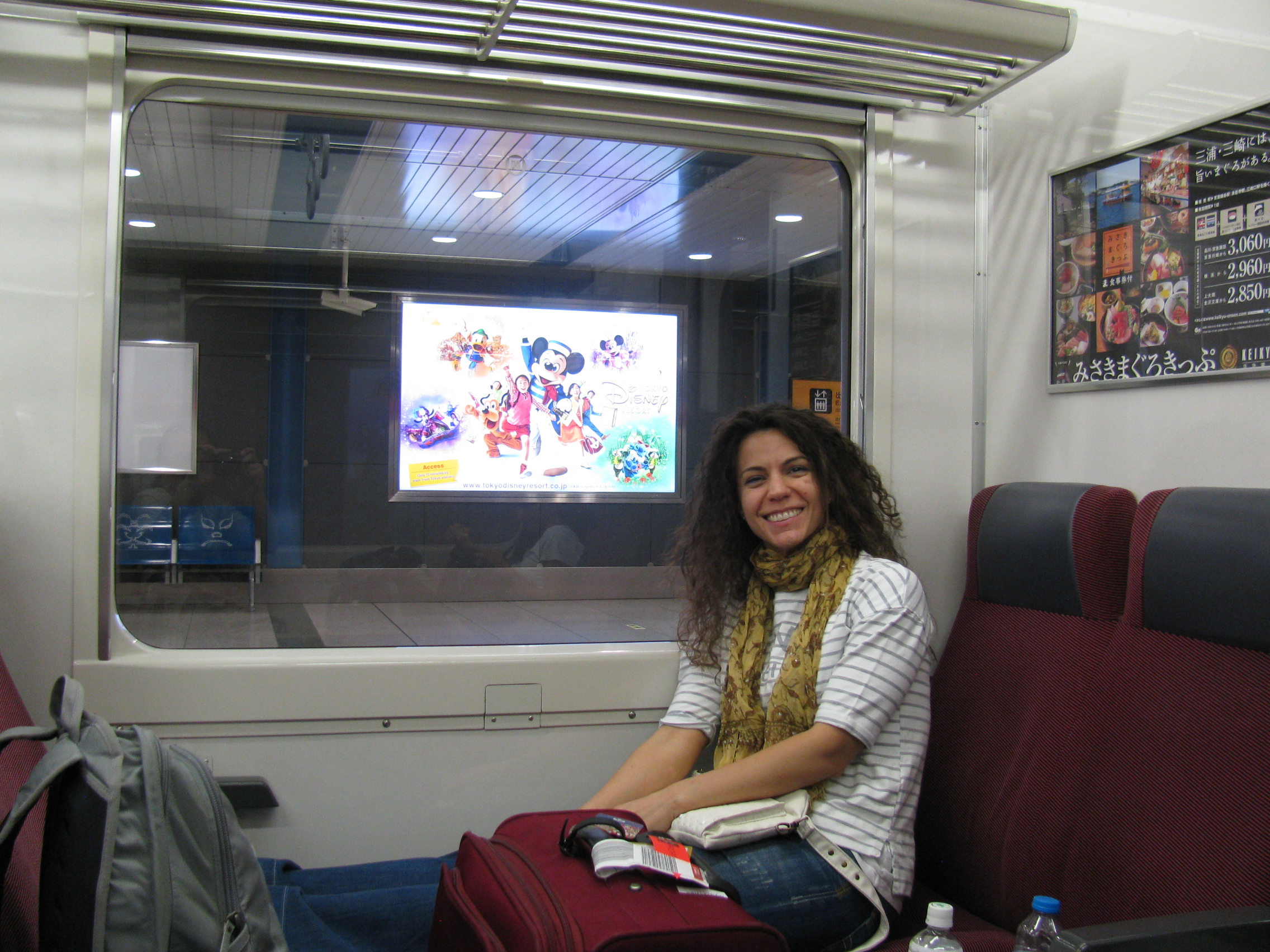 Sabah 8 gibi uyanıp kapsül otelden ayrıldım. Seherler ile kalacağım otel olan Kaminarimon otele çantamı bırakıp metroya gittim. Bekletmemek için erken gidiyorum. Tokyo metrosunun karşıma ne sürpriz çıkaracağı belli olmaz. 11 gibi hava alanına vardım. Havaalanında terminal 1de kuzey ve güney çıkışı olduğunu öğrendim. Bir ona bir buna baktım. Türk hava yolları güneye iniyormuş. Güney kapısına gittim. Orada biraz bekledim. Sonra bir de dışarıya bakayım dedim. Baktım benimkiler karşımda. Ece ayakları dikmiş yatıyor. Seher çantasında bir şeyler karıştırıyor. Fotoğraf makinemi hazırlamıştım. Onları görünce fotoğraf çekecektim ama onları böyle görünce şaşkınlıktan fotoğraf çekmeyi unuttum. Biri ayakları dikmiş. Biri çantada bir şeyler karıştırıyor.