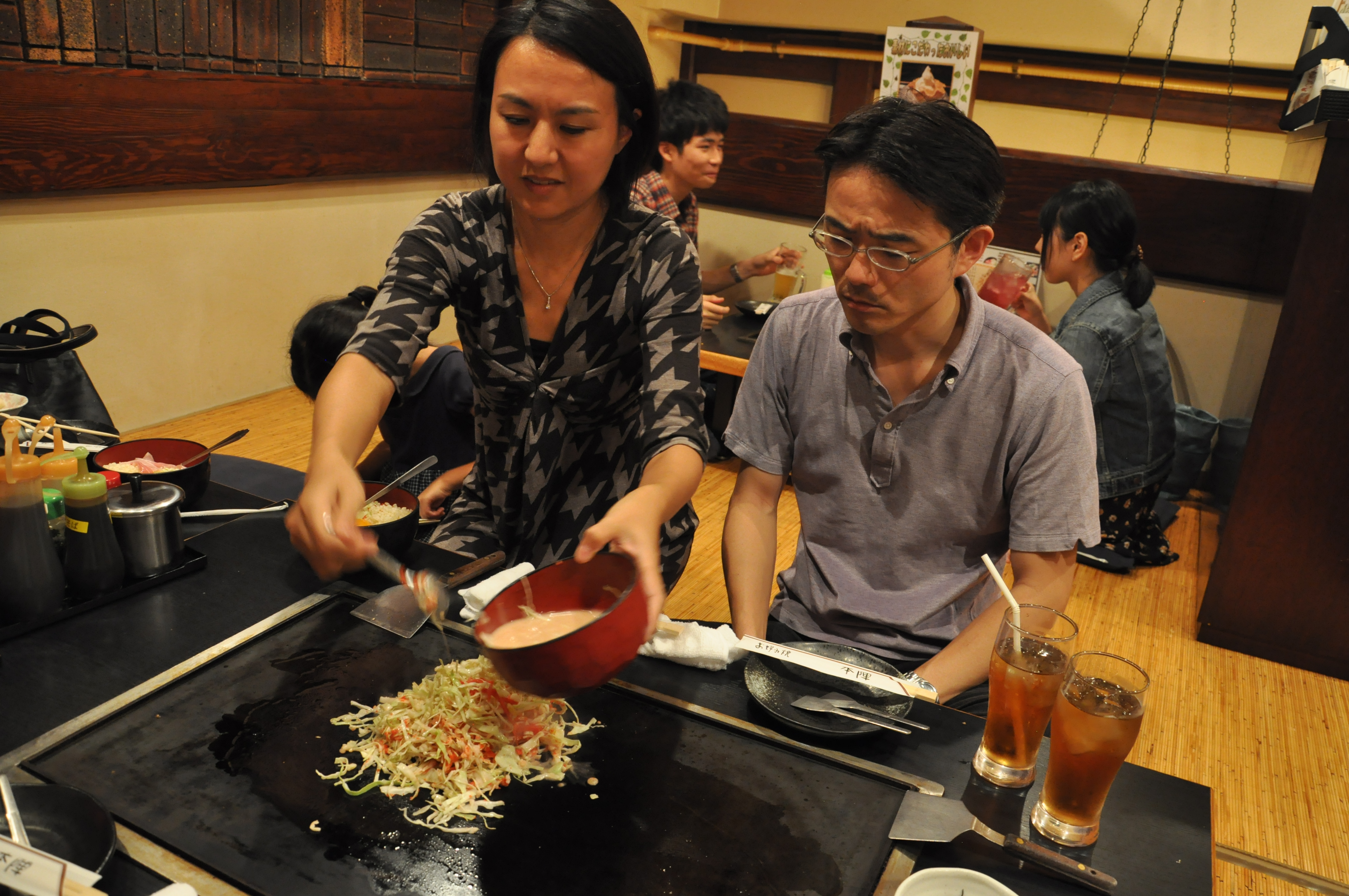 Yaklaşık iki saat dolaştıktan sonra Aki bizi bir şeyler yemeğe götürdü. Restoran, bizdeki kendin pişir kendin ye türünden bir yer. Yemekleri Yukiko pişirdi. Bize de fotoğraf çekip yemek kaldı.