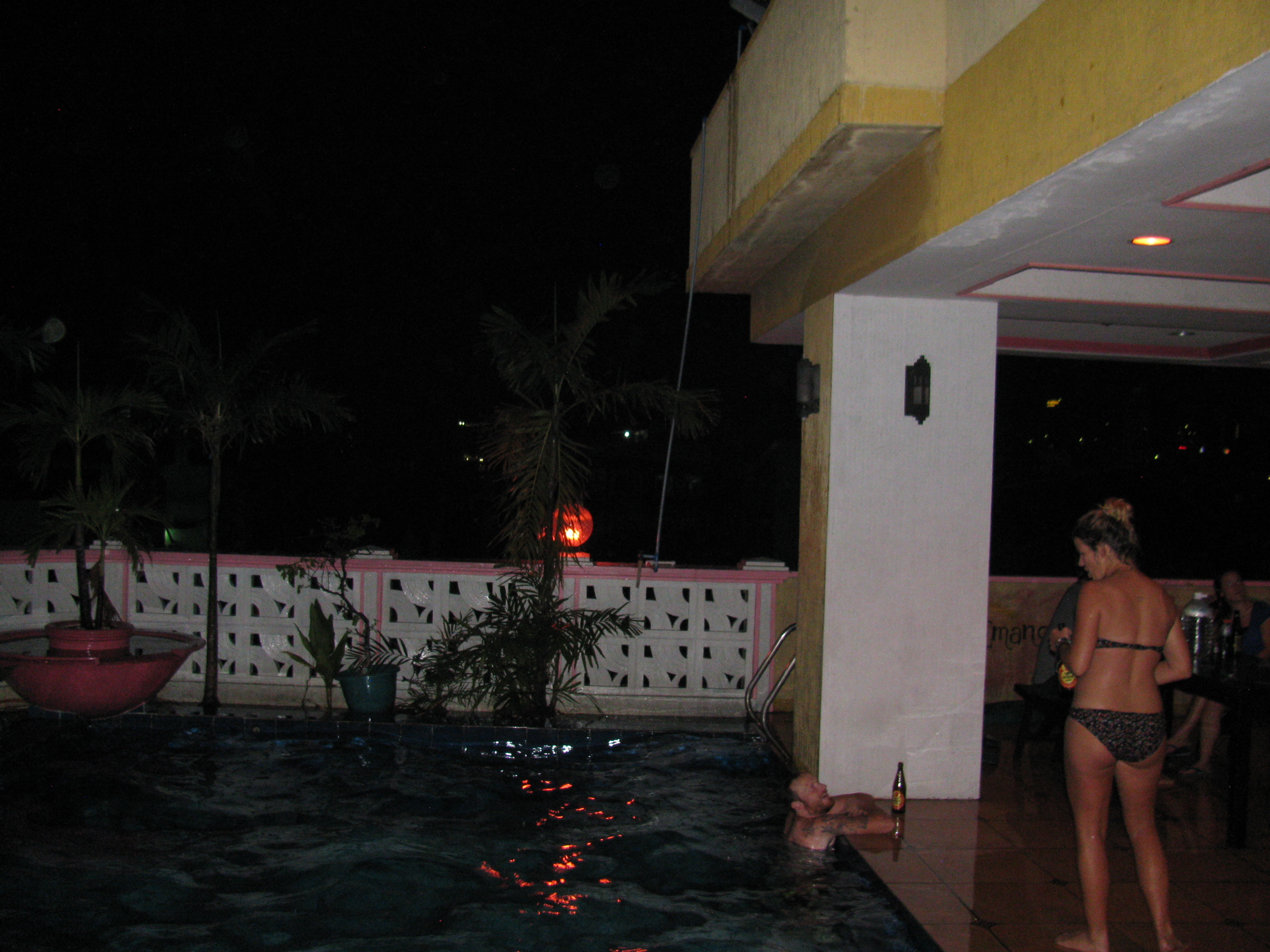 Akşamüstü yağmur yağmaya başladı. Hostele döndüm. Yağmur altında havuza atladım. Çünkü hava sıcaklığı 30 derece oldukça nemli.