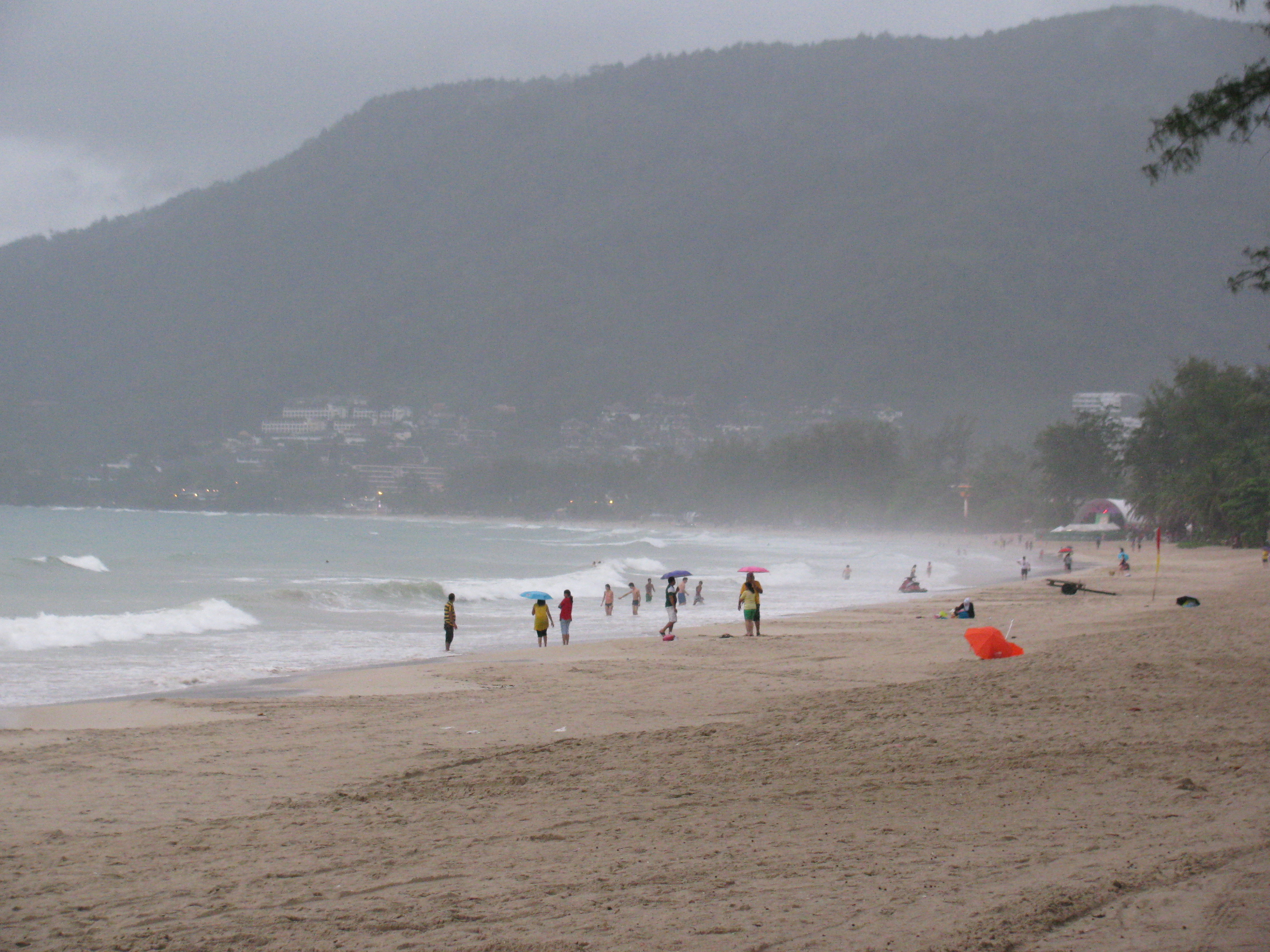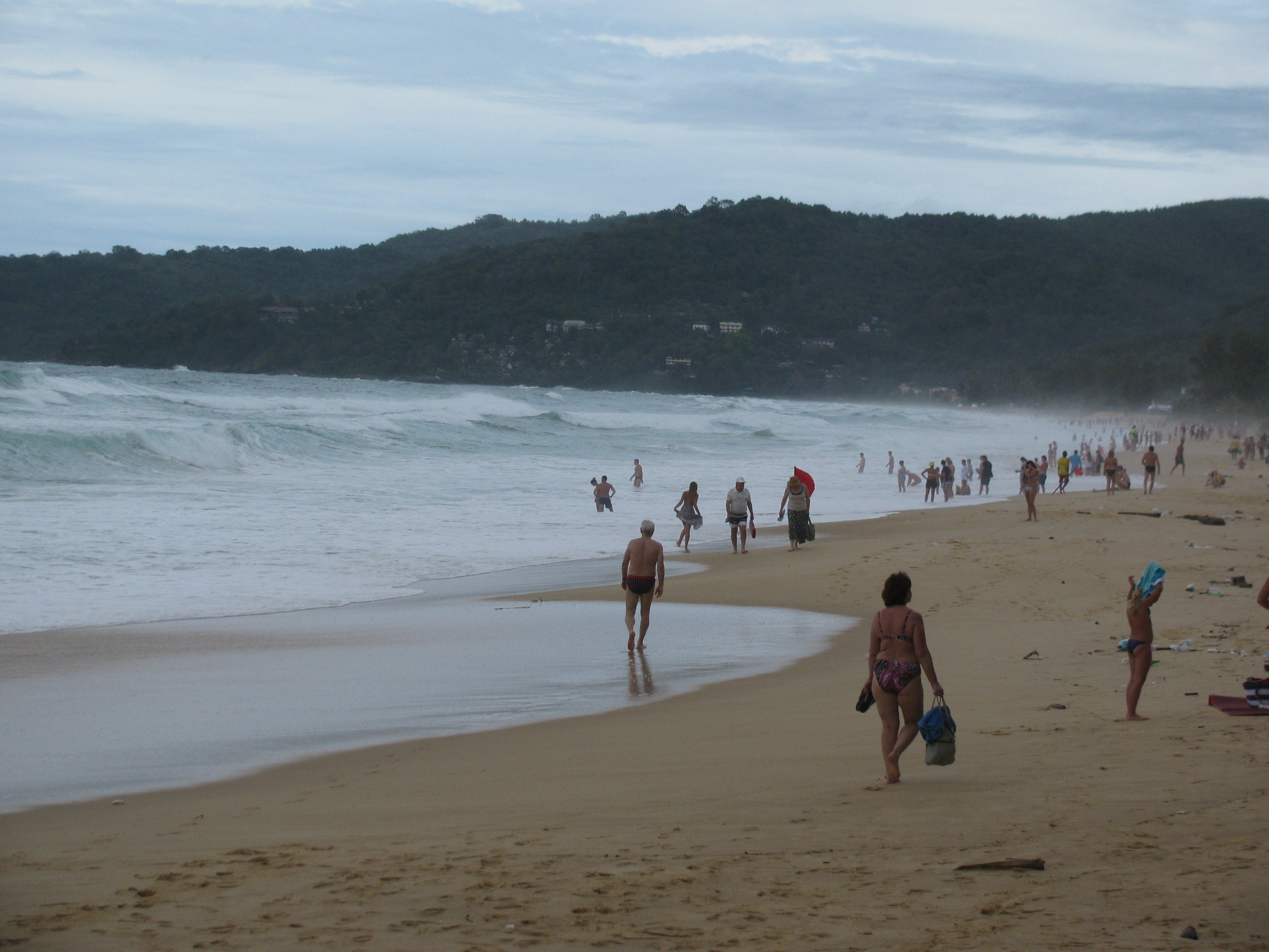 Phuket çok büyük olduğu için bu gün sadece güneyini gezeceğim. İlk durağım Karon Beach oldu. Burada deniz kavramı biraz değişik. Hava rüzgarlı, adam boyu dalga var. Ama hava çok sıcak. Ortalıkta bikinili kızlar, şortlu erkekler dolaşıyor. Denize giriyor. Pek alışık olmadığım bir manzara.