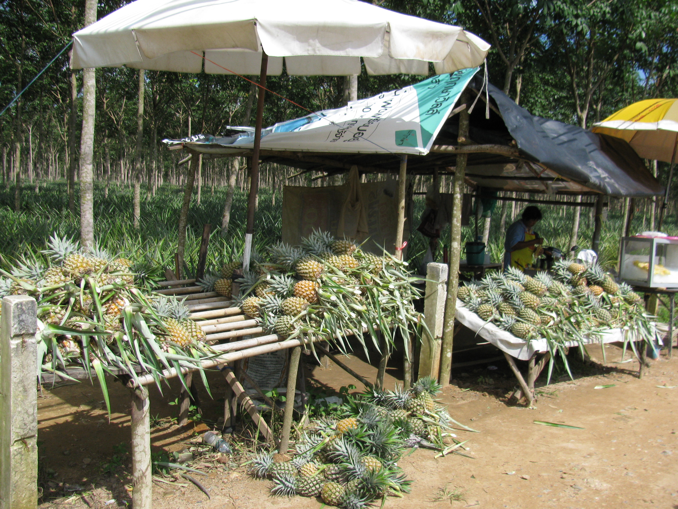 Phuket’in merkezine yaklaşmadıkça yollar inanılmaz güzel. Merkez’e yaklaştıkça motor zevkim kaçıyor. Merkezi geçip yaklaşık 20 kmlik havaalanı yoluna çıktım. Yol üzerinde uçsuz bucaksız ananas tarlalarını görüp de durmamak olmaz tabi. Böyle tarlada bir arada görünüşleri çok güzel. Yol üzerinde sık sık ananas satan satıcılar var. Ananaslar büyüklüklerine göre 10 ile 30 baht arası değişiyor. Türkiye’de 100 bahtlardan satılınca insan bir garip oluyor.