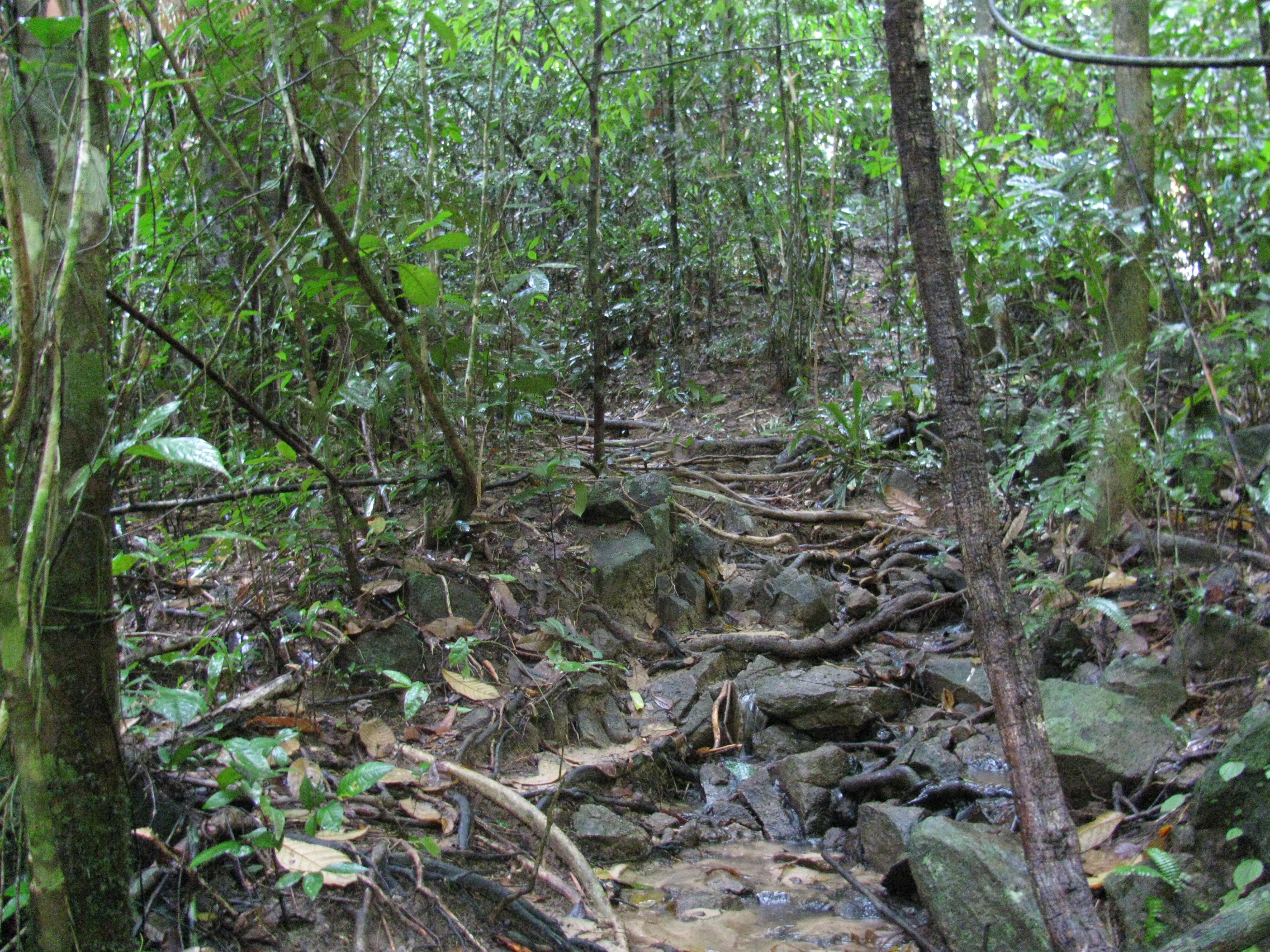 Bu kadar trafik çilesi, egzoz kokusundan sonra beni anca bir şelale paklar diye düşündüm ve Pangpae Şelalesine gittim. Şehirden uzaklaşıp şelaleye yaklaştıkça yollar yine ağaçlandı ve güzelleşti. Bu şelale bizim bildiklerimize benzemiyor. Yağmur ormanlarının içinde.Toplam 12 kısımdan oluşuyor. İlk başta küçük bir şelale sizi karşılıyor. İlerledikçe yağmur ormanının içine iyice giriyorsun ve yollar iyice silikleşiyor. Ormanın içerilerine doğru ilerleyerek 7. Kısma kadar geldim. 7. Kısımdan 8. Kısma giderken kayboldum. Başıma yağmur ormanının içinde kaybolmak da gelecekmiş. Orman komple ıslak, havası nemli ve her yer kayıyor. Yaklaşık 2 km ormanın içinde yürüdükten sonra ben de komple ıslandım. Bir oraya gidiyorum yol çıkmıyor, bir buraya gidiyorum yol çıkmıyor. Derken bir saat olduğum yerde dolandım. Tayland’ın başka bir yerinden çıkmaktan korktuğum için Olduğum yerden çok da uzaklaşamıyorum. Burası nasıl bir şelale? Buraya gelen yaşlı, genç ziyaretçiler burada nasıl dolaşıyorlar? Anlamış değilim. Yollar inanılmaz bozuk. Normalde trekinglerde zor denen parkurun onlarca katı zorlukta. Bir tane insan gördüm. Amca biraz suratsız olsa da sarılasım geldi. Amcadan sonra ilerleyeyim mi? İlerlemeyeyim mi diye düşünürken, iki tabela gördüm ve o an dönmeye karar verdim. Burası gibonların (bir çeşit maymun türü) yaşam alanıymış. Hiç gibonla karşılaşmak istemiyorum. Zaten yorgunluktan öldüm, sırılsıklamım.