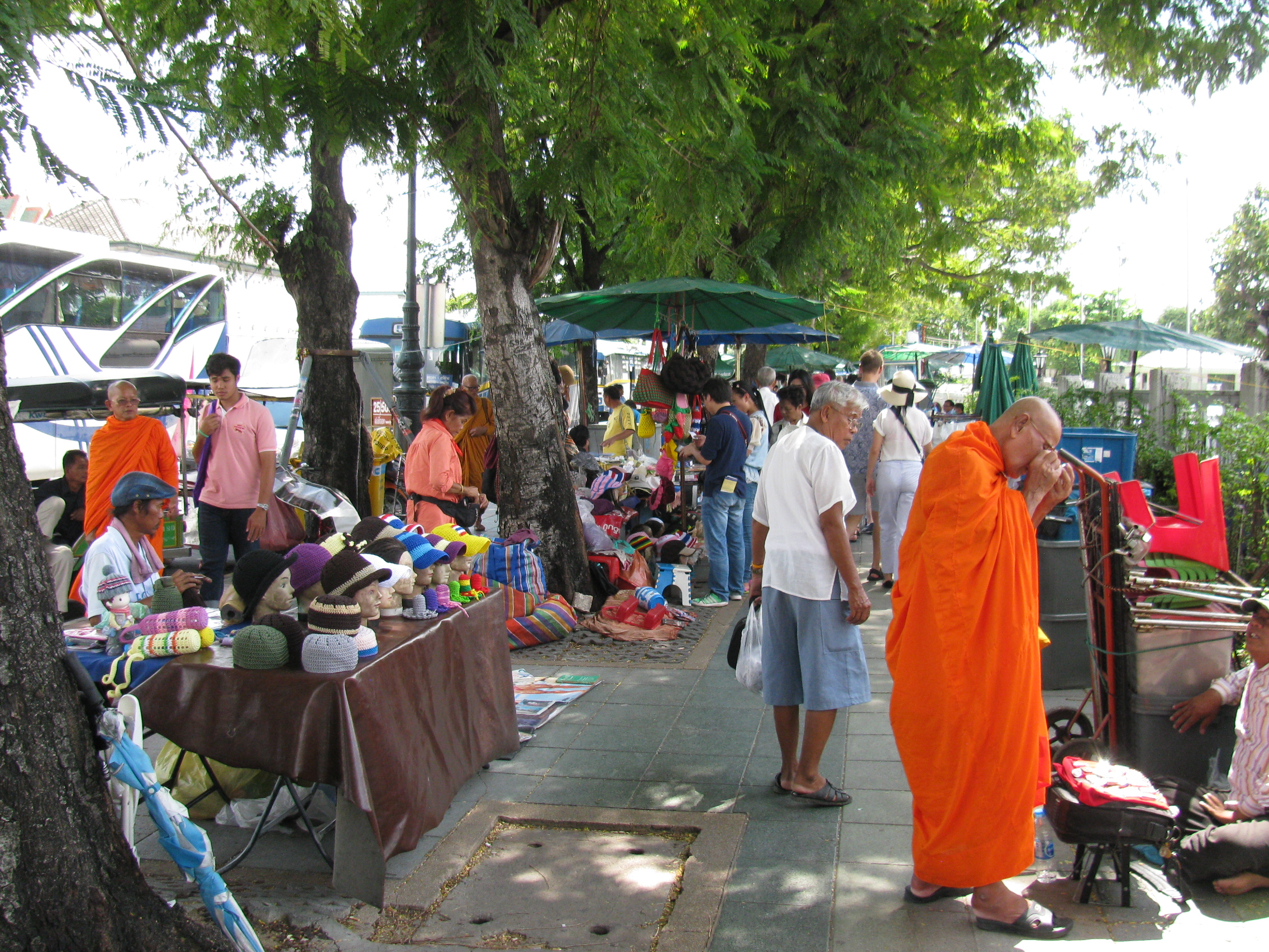Oradan, seyyar satıcıların arasından yürüyüp Chao Phraya nehrinin yanına geldim. Bu nehir şehrin ana nehri. Buna bağlı onlarca nehir var. Bunların arasında Bir deniz yolu ağı var.
