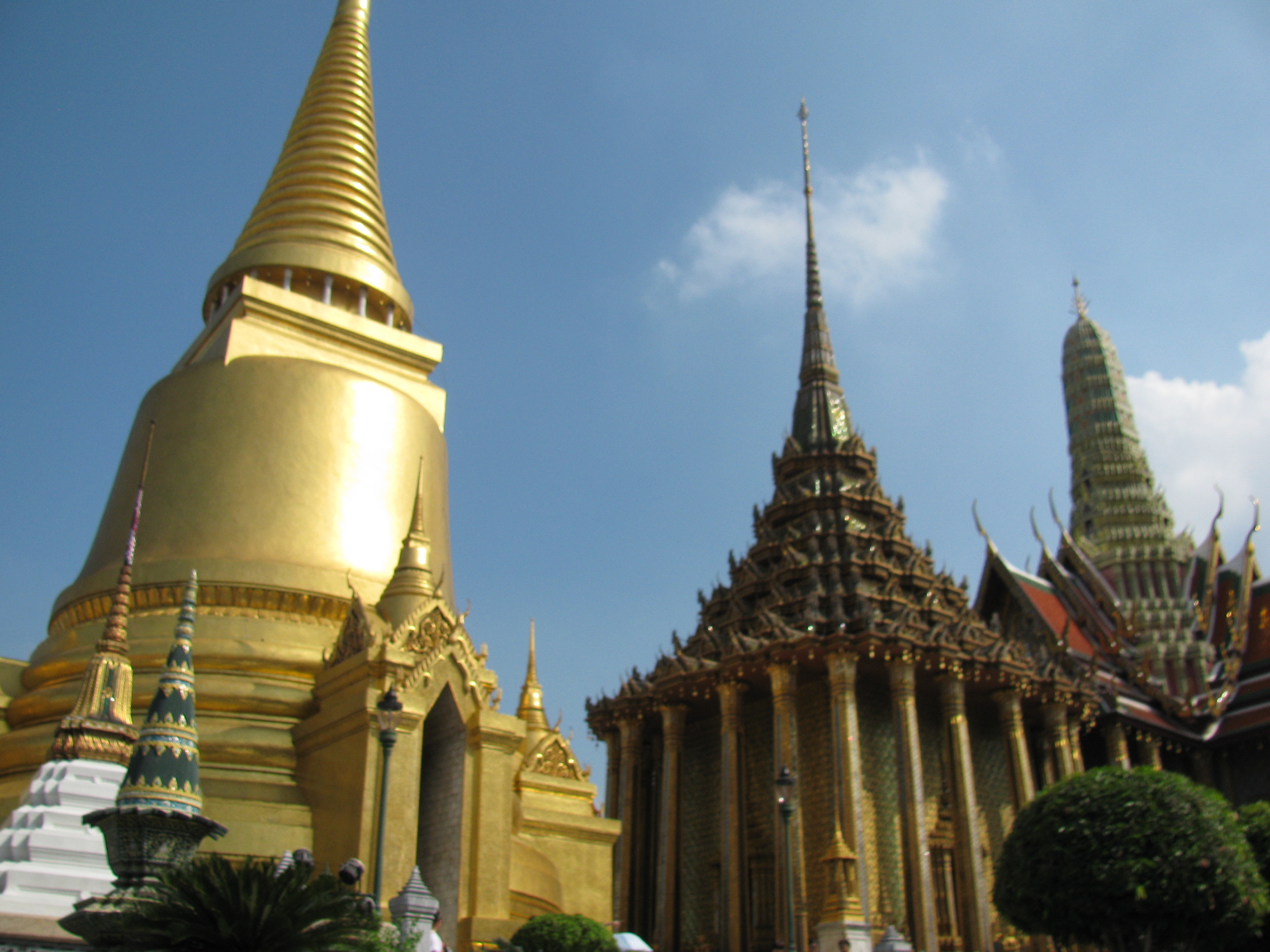 Burası, Bangkok’un tam merkezi. Rusların Kremlin sarayına benziyor. İçinde krallık sarayının olduğu, ünlü Wat Phra Kaeo’nun yani Emerald buddha’nın olduğu, tapınakların olduğu büyük bir alan. İlk olarak Emerald buda’nın olduğu Wat Phra Kaeo’ya gidiliyor. Burası Tayland’lılar için çok önemli bir tapınak. Kocaman bir yerde yukarıda küçücük kalan bir buda komple zümrütten oluşuyor. Üstüne de son derece gösterişli bir kıyafet giydirmişler. Zaman zaman törenle bu kıyafetini değiştiriyorlarmış.
