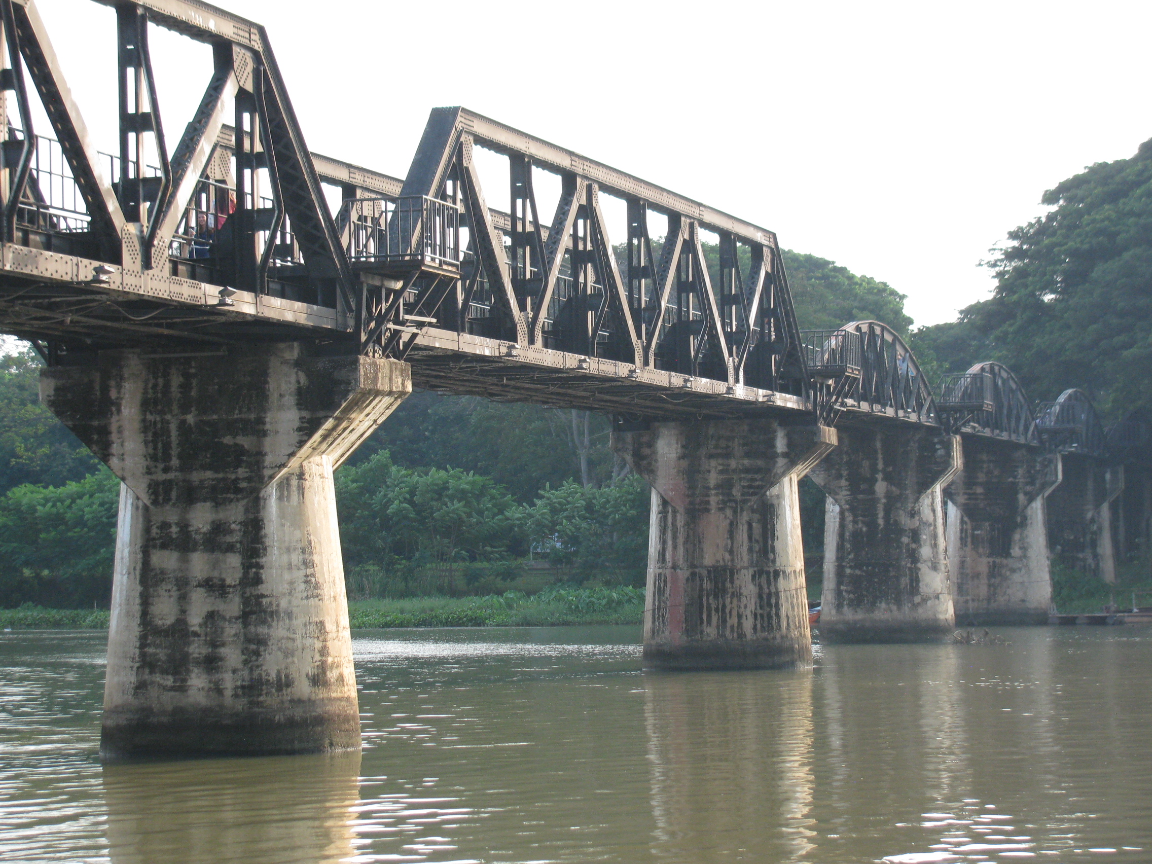 Kwai köprüsünü, 2. Dünya savaşında Japonlar, İngiliz esirlere yaptırmış. Köprü, Burma ile Tayland’ı birbirine bağlayan demir yolunun kritik bir köprü. Hatta bununla ilgili çok ünlü bir film ve herkesin bildiği bir film müziği var. Filmi izleyenler için çok değişik bir deneyim. İlk yapıldığında ahşap yapılmış ve yıkılmış daha sonra beton ve demir kullanılarak yapılmış o da yıkılmış, tekrar yapılmış. Yürüyerek köprü geziliyor. Zaten köprünün üzeri turist kaynıyor. Ayrıca turistik bir trenle de köprünün üstünden gezilebiliniyor.