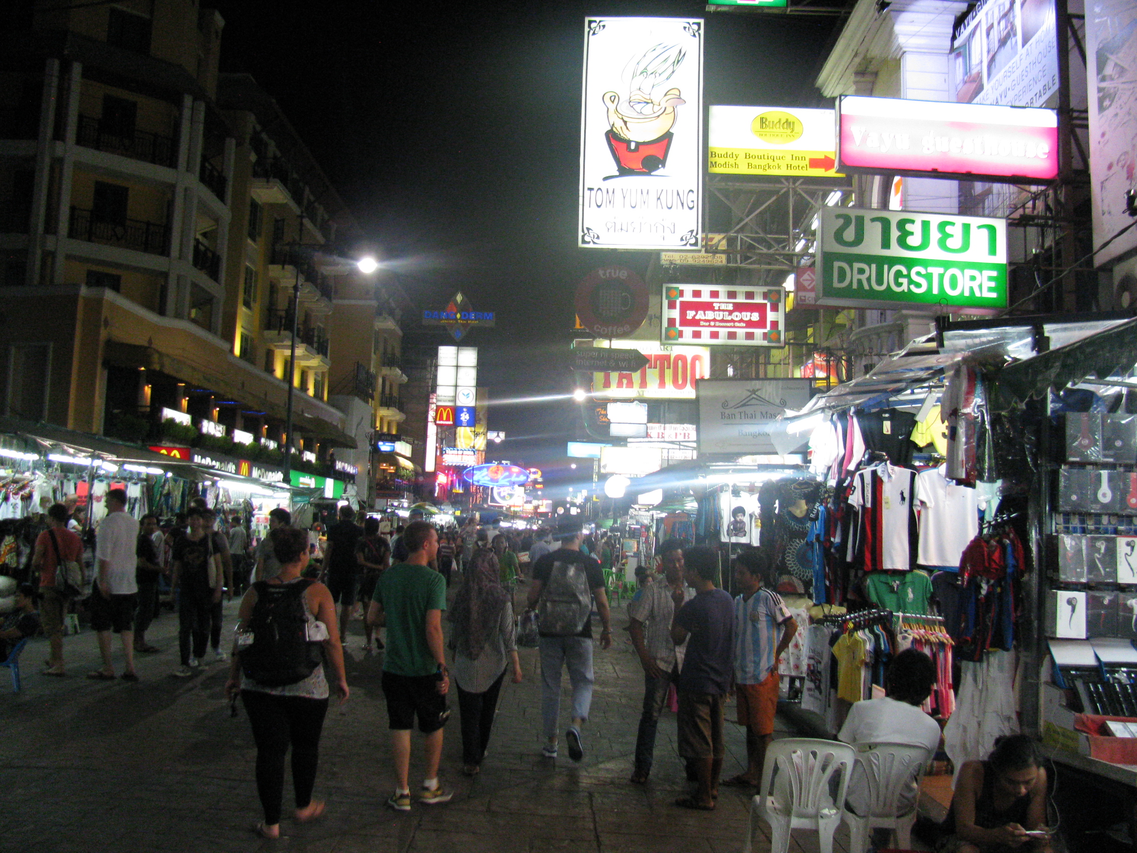Her gün yaptığım gibi otelde biraz dinlenip Khaosan Caddesine gittim. Dediğim gibi Khaosan Caddesi Bangkok’un en canlı caddelerinden biri. Cadde tamamen düzensizlik düzeninde kurulmuş bir cadde. Her yer karman çorman. Biri bir yerde takım kıyafet satıyor, diğeri yol kenarında masaj yaptırıyor, diğeri kaldırım kenarında uyuyor, diğeri son ses müzikte dans ediyor, yiyenler, içenler herkes var. Her şey yapmak serbest. Caddenin atmosferi süper.