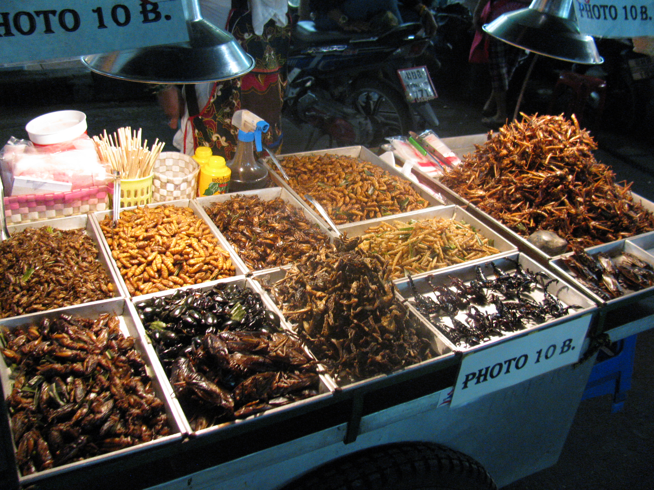 Caddede birçok böcek satan yer var. Çin’de ki gibi az çeşitte yok. Hamam böceğinden, kurbağasına, kurdundan, çekirgesine hepsi var. Fotoğraf çekmek 10 baht. Yemeye niyetim yoktu. Paşa paşa 10 bahtımı verim fotoğraf çekerken, kadın bana tombik bir kurt ikram etti. Ee ikram geri çevrilir mi? Attım ağzıma. Tadı fena sayılmasa da yerken ağzıma suyunu salmasaydı çok iyi olurdu. Biraz midem kalkmadı değil. Eklem bacaklıları yerken böyle bir sorun olmuyor. Kıtır kıtır ağızda dağılıyor.