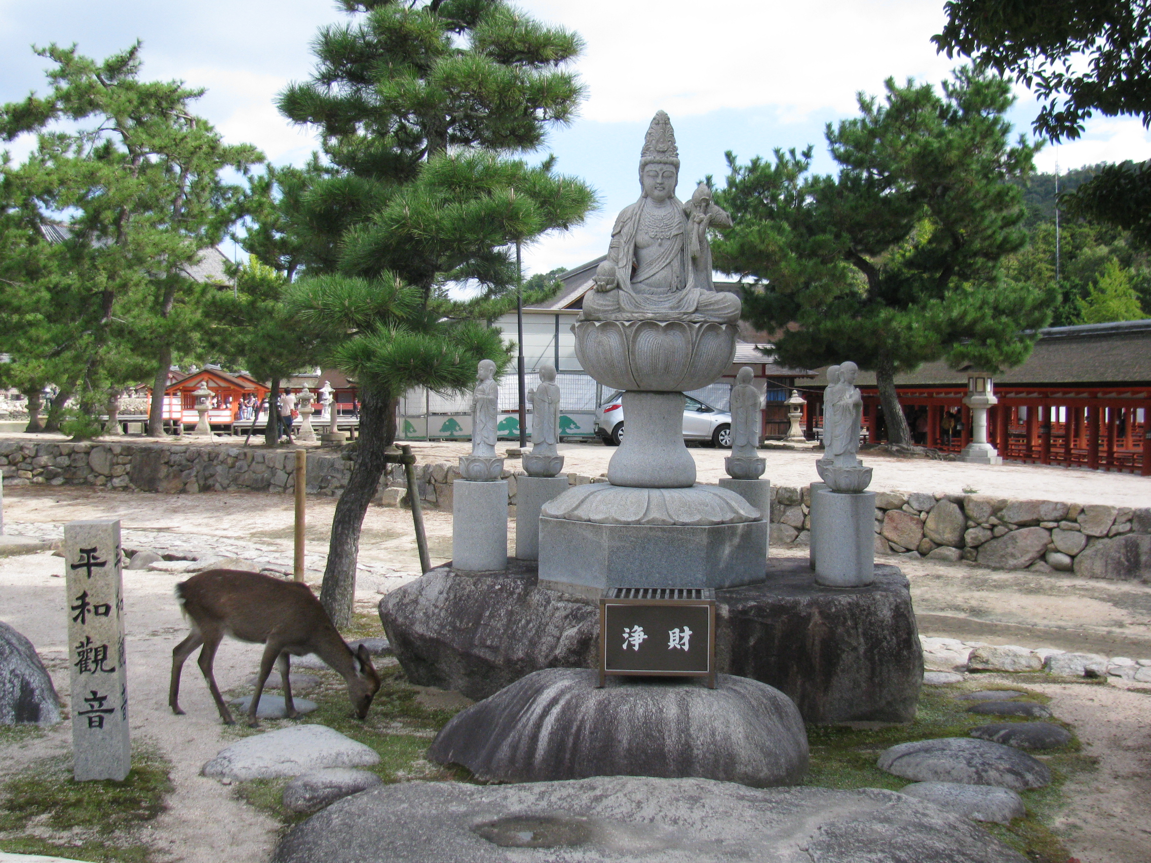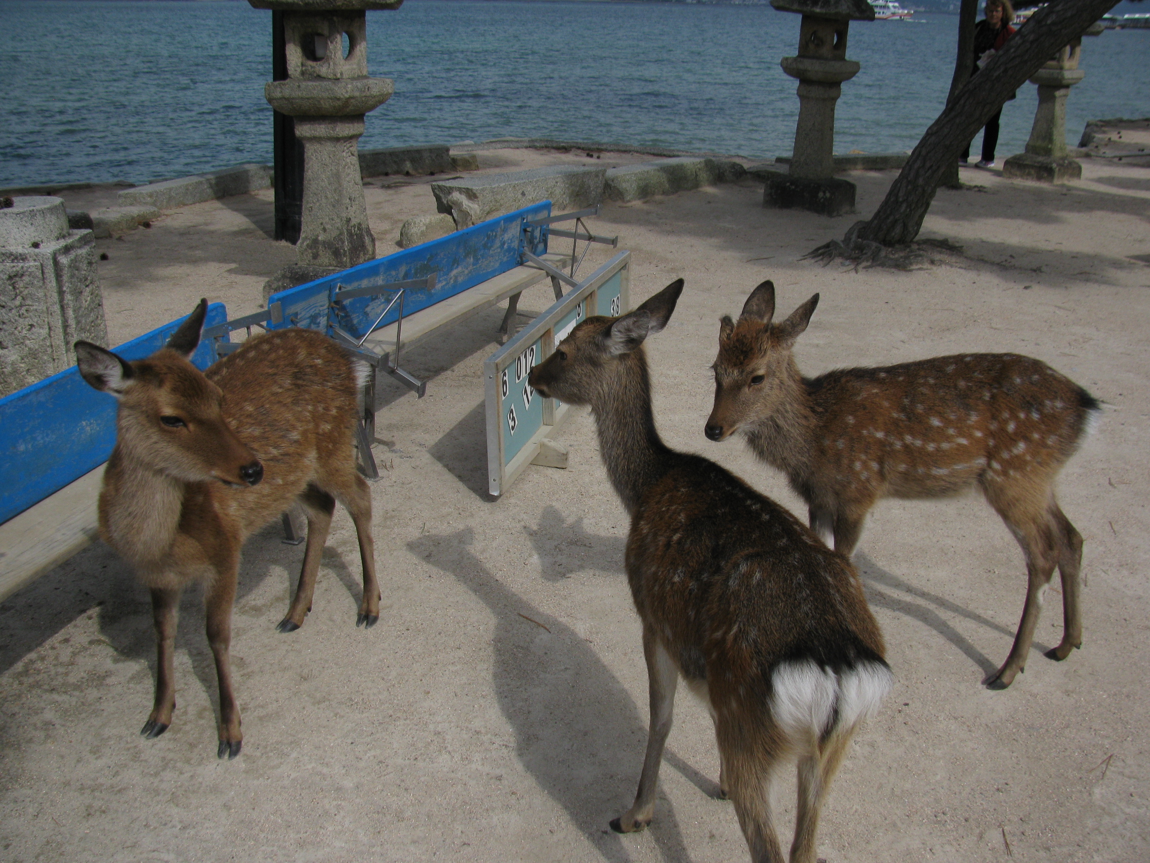 Miyajima, Hiroşima yakınlarında bir ada. Hiroşima’dan kara yoluyla ya da tren ile bir saatlik mesafede olan Miyajimaguchi feribot limanına, oradan sürekli kalkan ve yaklaşık 10 dakika süren feribot ile Miyajima adasına varılıyor. Daha hızlı adaya varmak isteyenler için de direk Hiroşima’dan Miyajima adasına hızlı feribot var. Fakat bunun fiyatı 5 katı daha pahalı. Ada oldukça küçük olmasına rağmen çok etkileyici bir ada. Daha adaya yaklaşmadan denizin ortasındaki toriiyi görüp etkilenmeye başlıyorsunuz. Adaya adım atar atmaz geyiklerden oluşan bir karşılama komitesi tarafından karşılanınca adanın çok farklı bir yer olduğunu anlıyorsunuz.