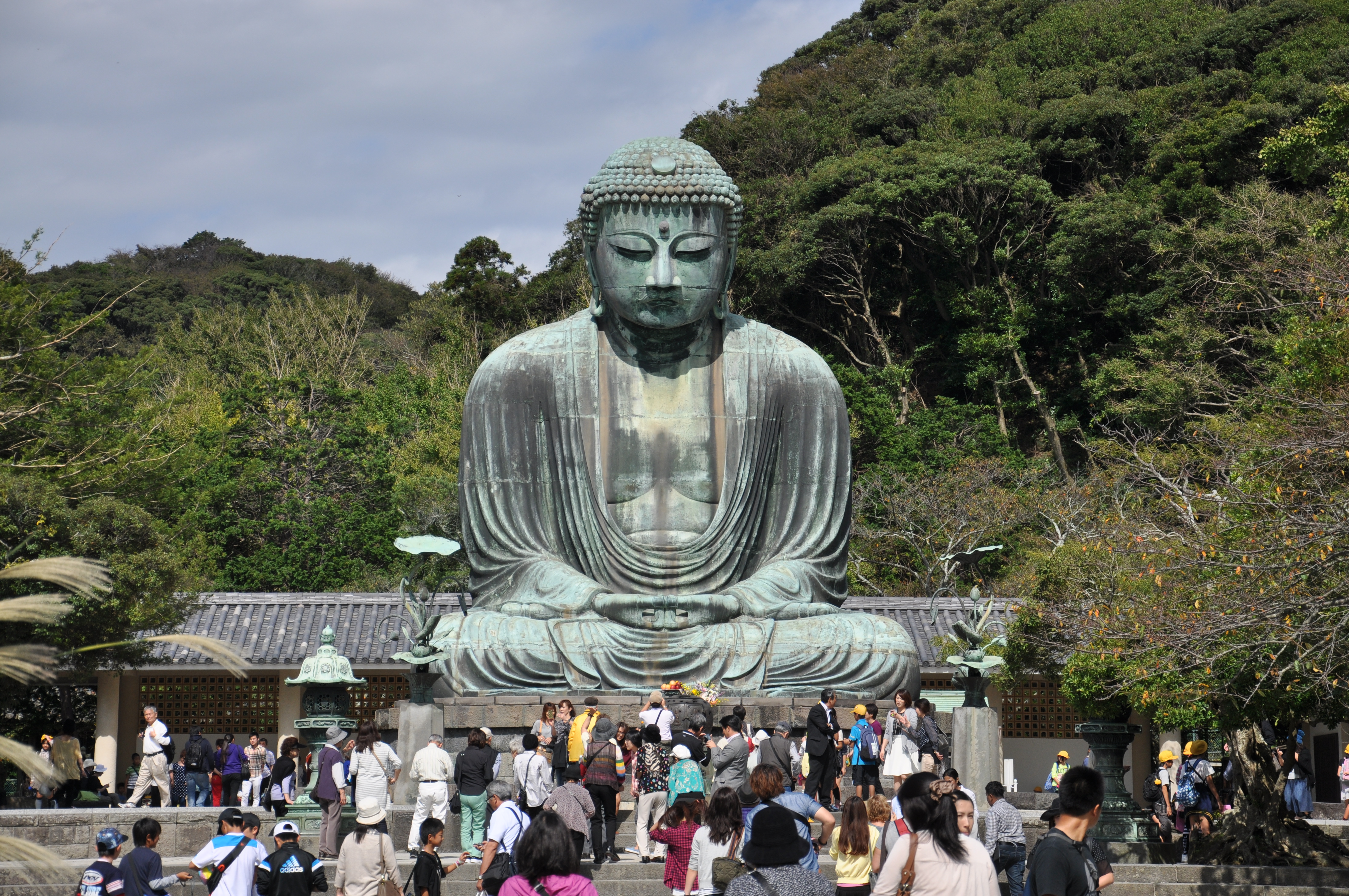 Kamakura’da en önemli tapınak, Ünlü oturan Buda’sının bulunduğu Kotoku-in tapınağı. Zaten çoğu kişide bu oturan buda heykelini görmek için Kamakura’ya geliyor. Tapınağa kalabalık arasından girip 20 metre ilerledikten sonra 120 ton ağırlığında ve 13,5 metre uzunluğunda dev Buda sizi bağdaş kurumuş bir şekilde sizi beklediğini göreceksiniz. Dünyanın en büyük Budalarından biri olan bu Buda 1252 yılında yapılmış. Daha sonra her Japon yapıtının kaderi gibi bu da komple yıkılmış ve daha sonra tekrar yapılmış ve küçük tadilatlar ile günümüze kadar gelmiş.