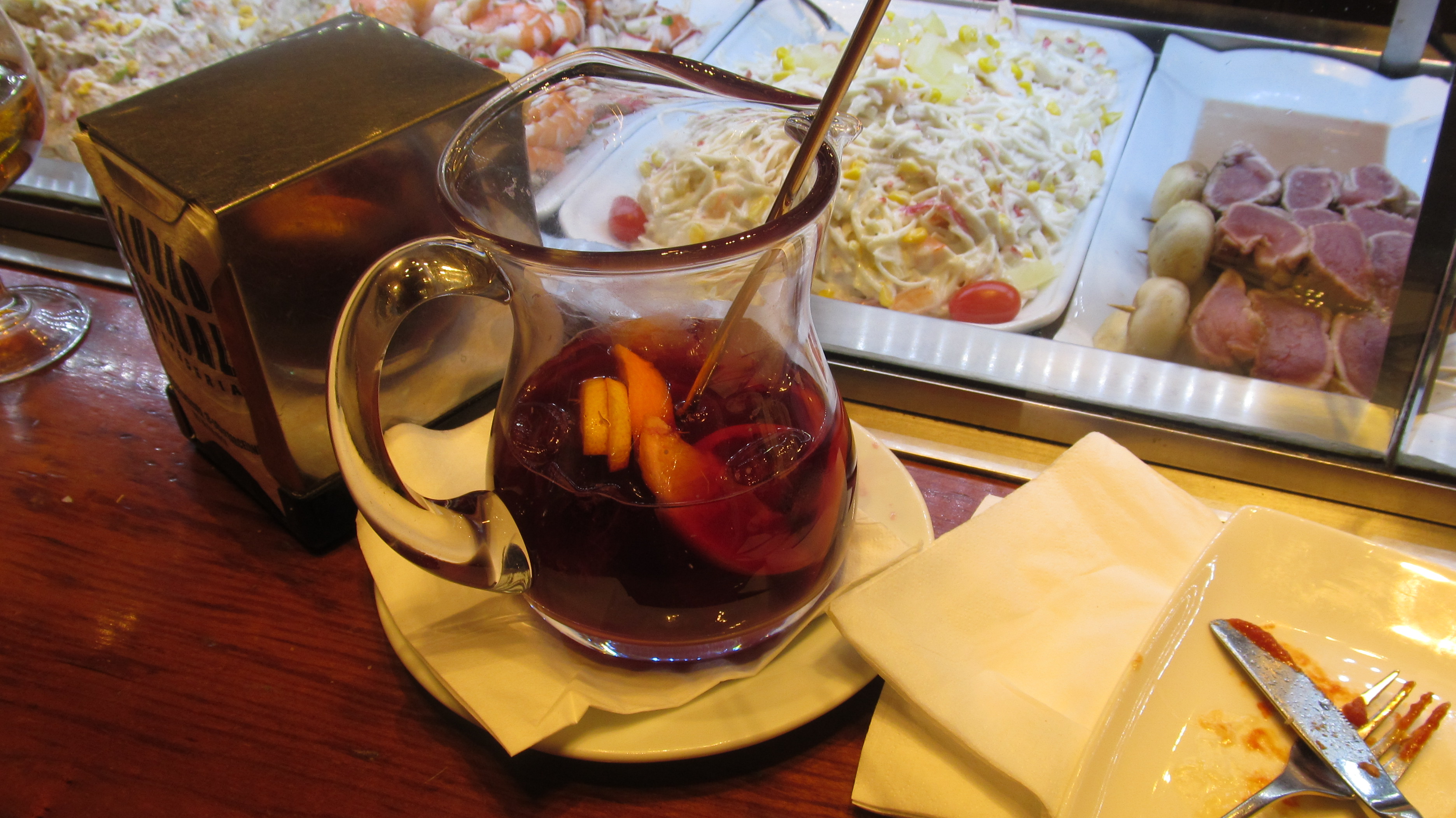 Otelden çıkıp ilk iş yemek ihtiyacımızı gidermek oldu. Yemek için ilk adres otele iki sokak mesafede bulunan Ciudad Condal (Cerveceria Catalana ise bir diğer şubesinin adı) adlı tapaslarıyla ünlü mekan(Rambla de Catalunya, 18). Malum meşhur olan her yer kalabalıktır. Açlığımızın itici gücüyle hemen yer bulduk ve bara yerleştik. Patatas Bravas (fırında patates ve özel sosundan oluşuyor) ve birkaç tapas söyledik(padron:kızarmış küçük biberler ve deniz ürünleri içeren birkaç tapas.Tapas:Minik atıştırmalıklar.Kanepe şeklindeler.Ve deniz ürünlüsü,kırmızı etlisi olduğu gibi meze şeklinde sunumlu olanları da mevcut) . Ve bir sürahi sangria(meyveli şarap kokteyli)… Fiyatlar ortalamanın biraz üstü ama yemekler lezzetli ve sangria müthişti.