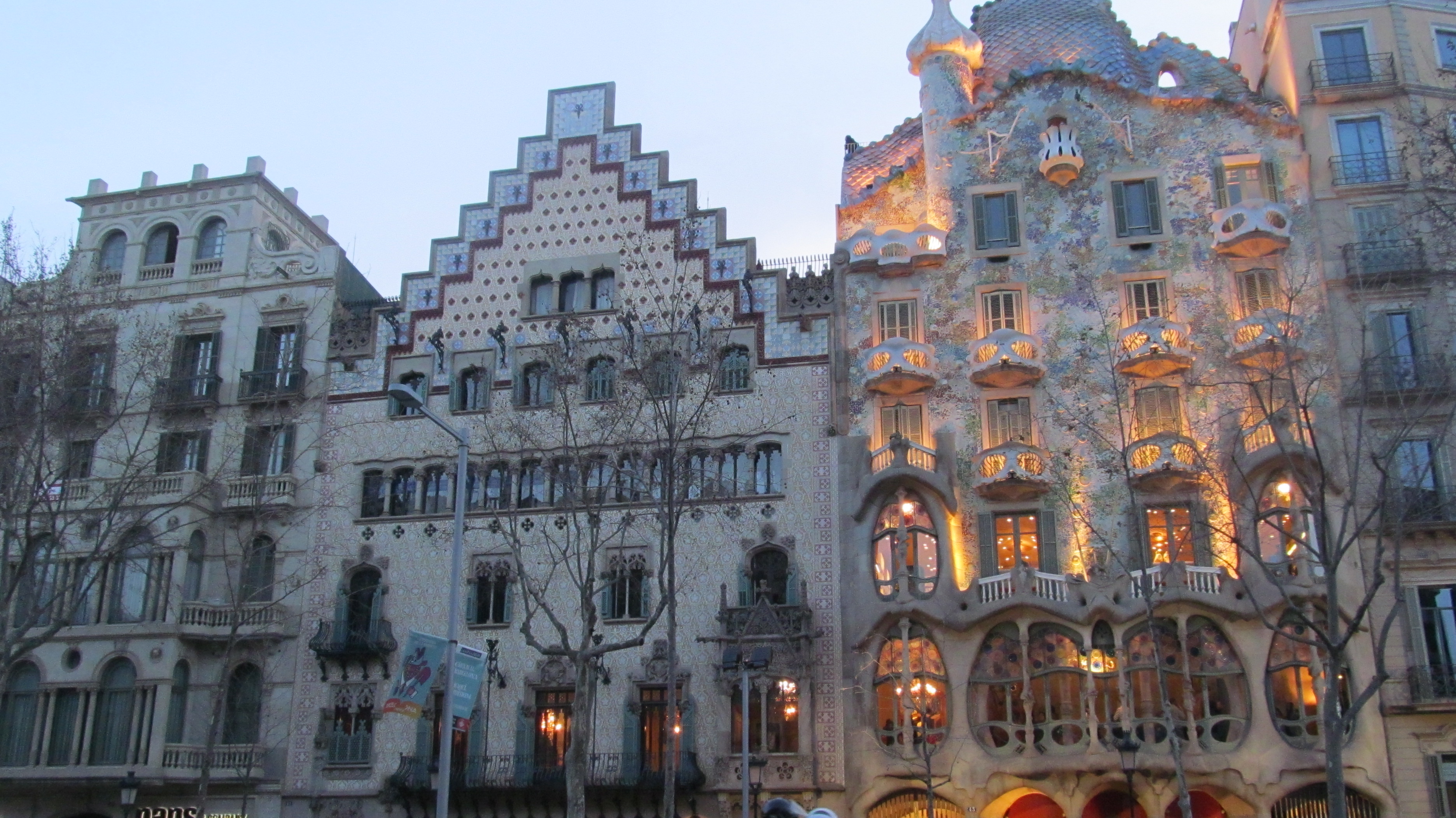 Buradan sonraki yerimiz Passeig de Gracia. Uzun, lüks mağazaların olduğu ama en önemlisi Katalan mimar Gaudi’nin eserlerindan Casa Batllo ve Casa Mila /La Pedrera’nın bulunduğu cadde. Burası yemek yediğimiz yere oldukça yakın olduğundan yürüyoruz. Yol üstünde Casa Batllo, Casa Ametlier ve Casa Morera yapıları yan yana. Casa Ametlier’in mimarı Josep Puig i Cadafalch. Casa Morera’nın mimarı ise Domènech i Montaner. Casa Katalanca “ev/konut” anlamında.