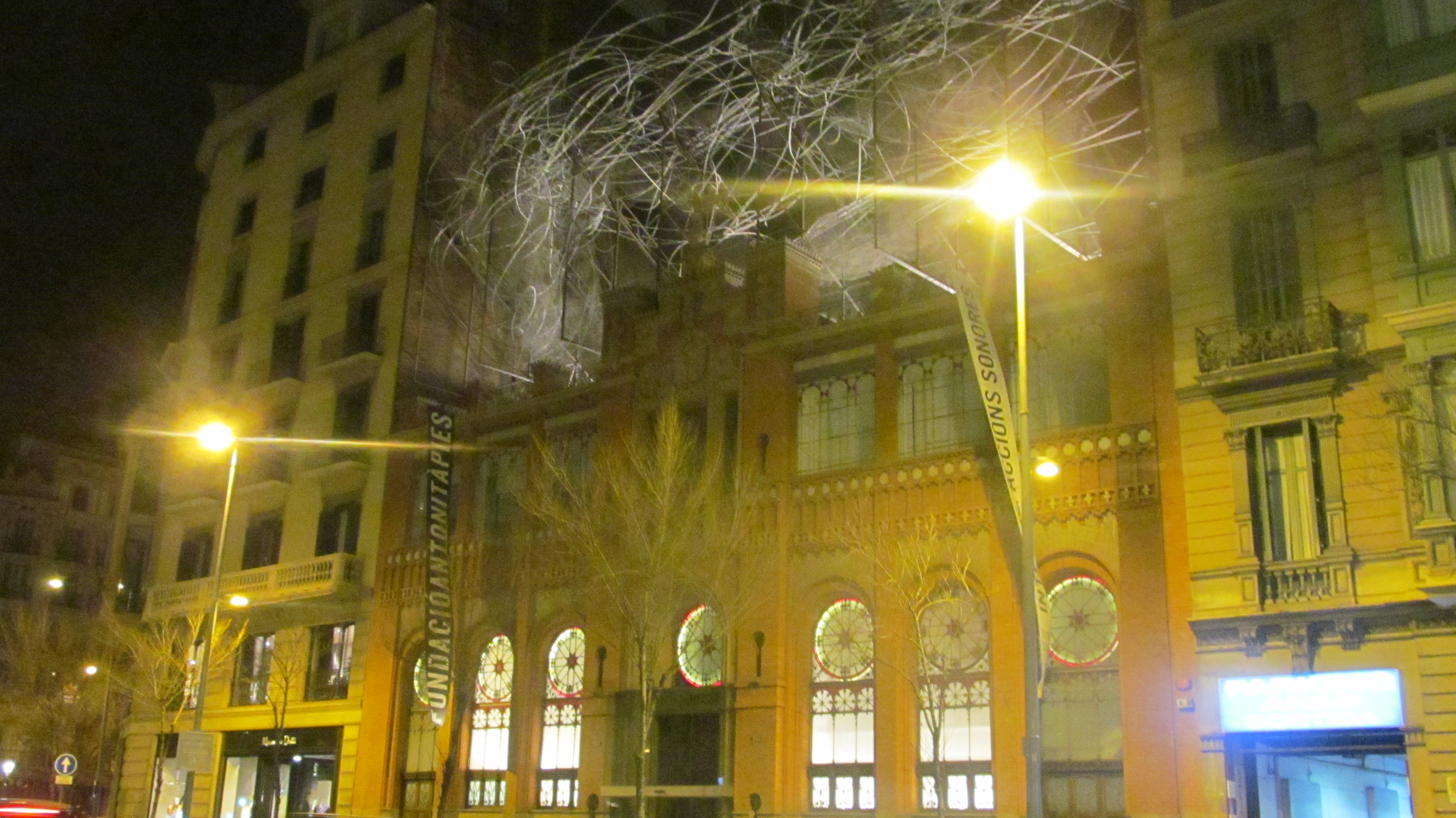 Buradan Mercat de Sant Josep de la Boqueria kısaca La Boqueria’ya gitmek için acele ediyoruz. Çünkü mevsimin kış olmasından dolayı La Boqueria erken kapanıyor ve Pazar günleri kapalı. La Boqueria La Rambla’da.. La Rambla Barselona’nın en ünlü, en kalabalık caddesi(La rambla’yı daha sonraki yazımda anlatacağım). La rambla’ya gitmeden önce Casa Batllo’nun bir sokak yanında bulunan Fundació Antoni Tàpies/Antoni Tapies Vakfı’nı dışarıdan görmek istedik.