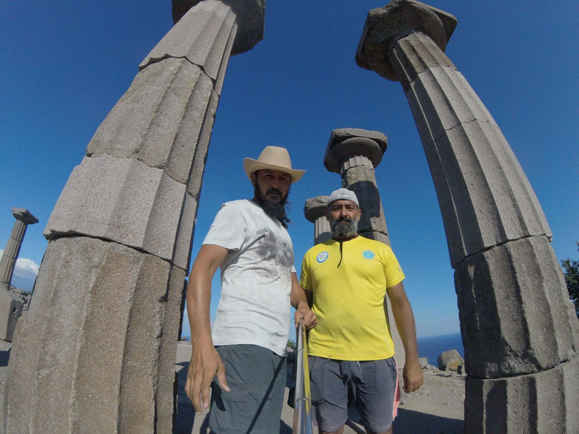 Assos (Behramkale), tarihi MÖ. 500’lü yıllara kadar giden önemli bir antik kent. En tepesinde Apollon tapınağı ve yamaç aşağı limana kadar uzanan bir alanda agorası, tiyatrosu, yerleşim yerleri bulunan Assos’u önemli kılan bir diğer özelliği ise arkadaşının daveti ile gelip üç yıl yaşayan Aristo’nun burada okul açması. Biz de Assos antik limanda mola verip Antik kenti gezmeden gitmek istemedik.