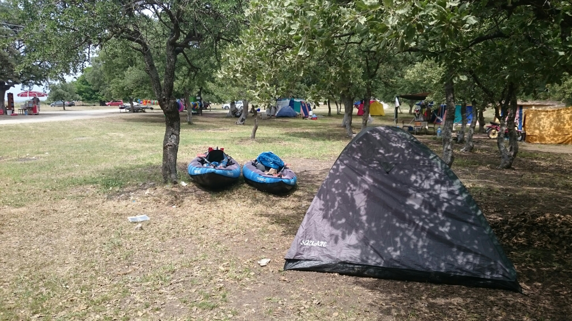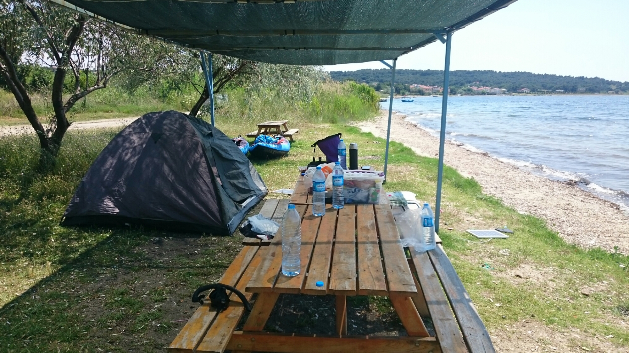 Çanakkale’nin tam merkezinde olan Akol Otel’de iki gece konakladıktan sonra sabah erkenden marinadan ayrıldık. Bu günlerde rüzgar ile çok sorunumuz olmuyor fakat yağmur ve güneş bizi biraz uğraştırıyor. Güneş çıkarsa yakıp kavuruyor, yağmur yağarsa sağanak şeklinde yağıyor. O gün de sıra güneşteydi. Çanakkale’yi geride bırakıp kıyıdan ilerlerken Nara Burnunu geçtik. Burada donanmaya ait büyük bir askeri birlik var. Saat 12 gibi Yapıldak’a vardığımızda sıcaktan erimek üzereydik. Çadırımızı kurup gölgede dinlenmeye çekildik.