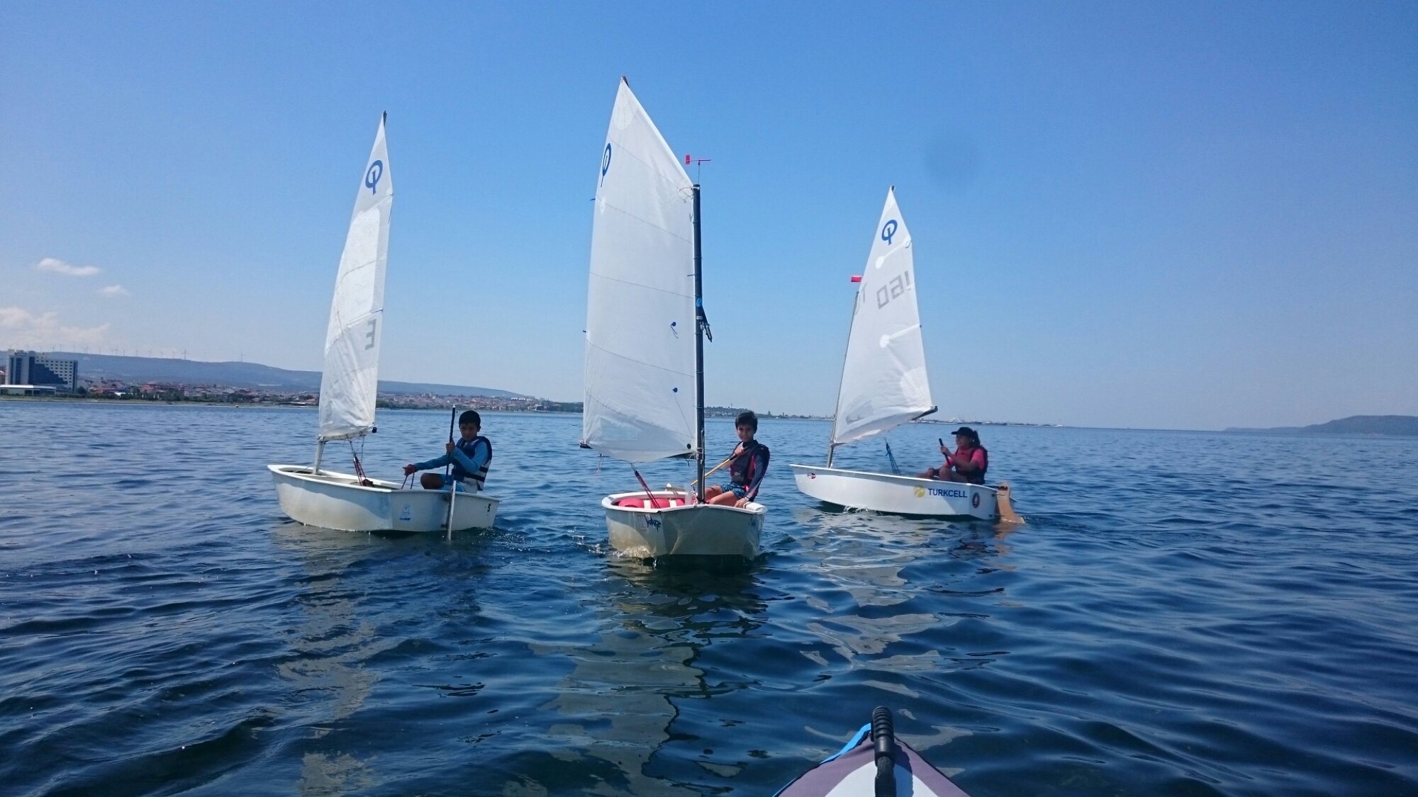 Komutanlarımızla vedalaşıp Çanakkale’nin merkezine doğru kürek çekmeye başladık. Bu sefer bizi başka bir sürpriz bekliyordu. Kepez’i geçerken Çanakkale Yelken Okulunun önünde yaşları 8-11 arası geleceğin denizcilerini gördük. Pırpır denilen küçük yelkenleriyle yarışa hazırlanıyorlarmış. Yanlarına yanaşıp sohbet ettik. Onlar bize şaşırdı, biz geleceğin parlak gençlerini gördüğümüze sevindik. Hepsi de çok iyi yelken kullanıyorlardı. Vedalaşıp yola devam ettik.