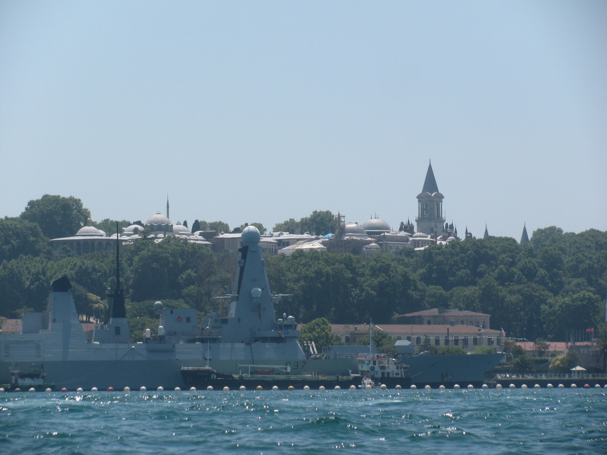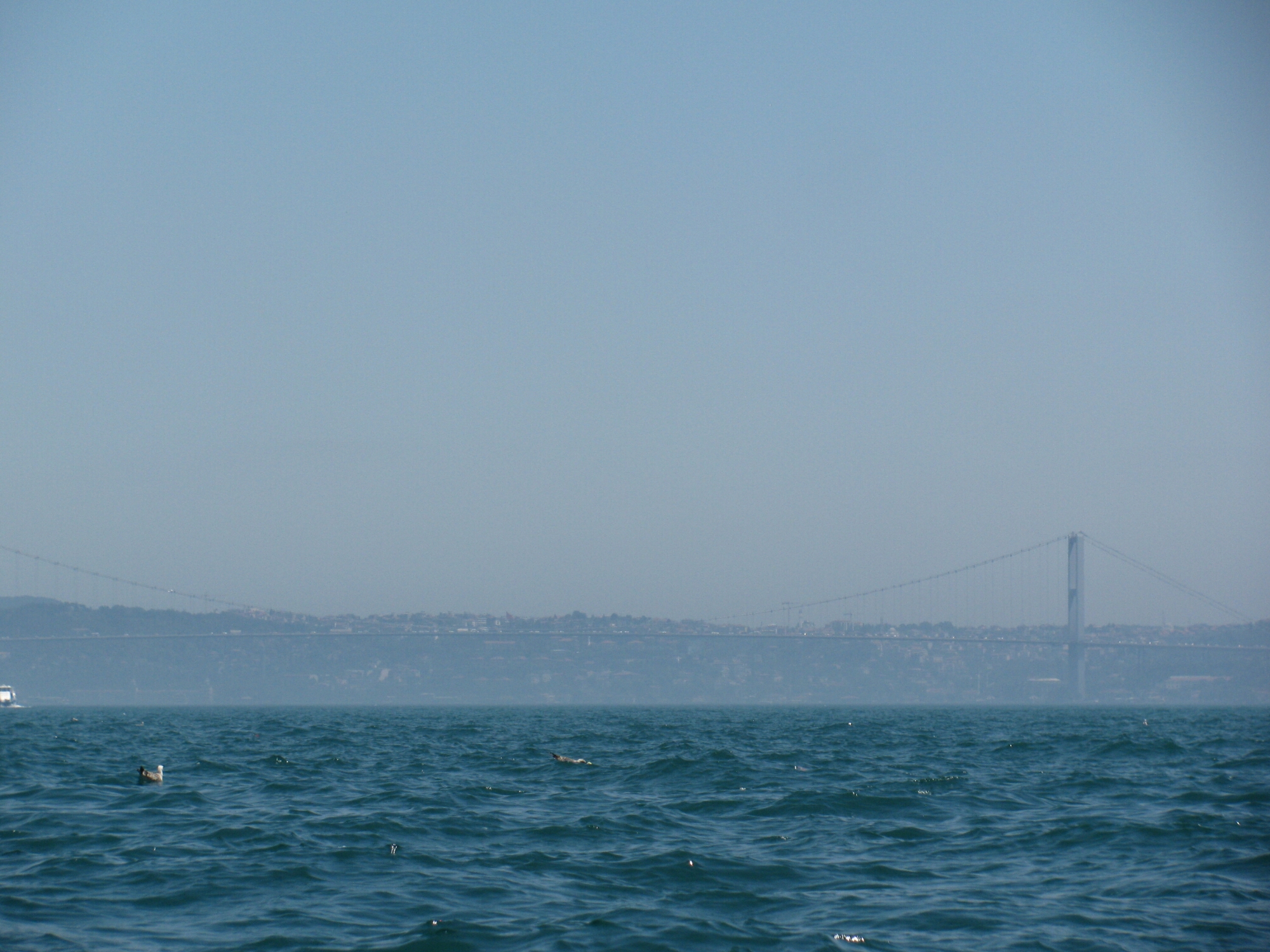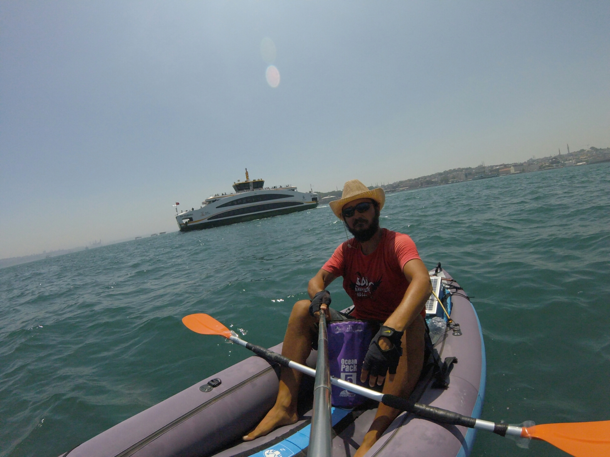 Dinlenip kendime geldikten sonra boğazın en sıkışık trafiğinin olduğu yer olan Haliç girişine geldim. Feribotlar o kadar çok ki önümden bir sağa bir sola gidiyorlar. Birbirlerini solluyorlar. Kendimi eski Türk filmlerinde karşıdan karşıya geçmeye çalışan Kemal Sunal gibi hissettim. Galata Köprüsüne doğru gidip geçmeyi düşünürken boş bir an yakaladım ve son sürat Sarayburnu’nun ucunda duran savaş gemisinin oradan karşıya doğru kürek çekmeye başladım.