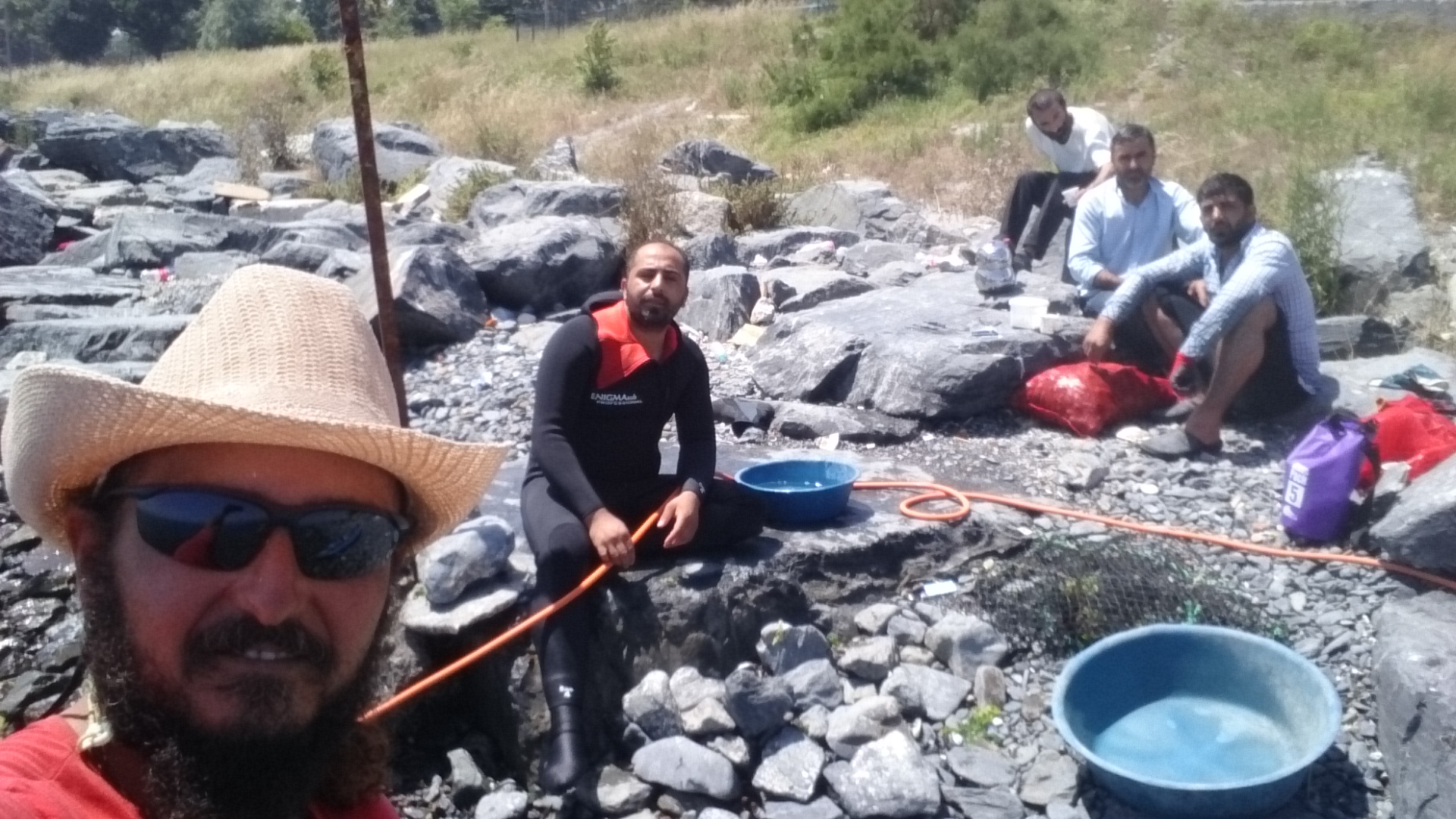 Rüzgar 1-2 knot arkamdan estiği için rahat rahat yola devam ettim. Solumda Ayasofya, Sultanahmet camileri, Topkapı sarayı, önümde Boğaziçi köprüsü, sağımda Kız kulesi, Anadolu yakası ve adalar silueti manzarasında kürek çekerek Sarayburnu’na geldim. Turun en güzel manzarasında ilerlerken Sarayburnu kıyısında girdaplara ve akıntıya yakalandım. Küçücük burnu geçerken bir taraftan kanonun dönmesini durdurmaya çalışıyordum diğer taraftan akıntıyla mücadele ediyordum. Yorgunluktan bitmeden karşıma bir kez daha güzel insanlar çıktı. Burnun ucunda midye toplayan dalgıçlar bana uzaktan “çay içer misin” diye seslendi. Bir saniye düşünmeden yanlarına gittim karaya çıktım. Çay koydular, yemek hazırlamak istediler. Yemek yemedim ama çaylarını içtim ve bir saate yakın sohbet ettik.